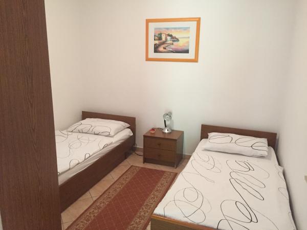 Zarezervovali jsme si byt č.2. Útulný a čistý byt se všemi potřebnými službami. Dokonce mají vlastní parkovací místo, které bylo pro nás velmi důležité a pláž je vzdálena 30 metrů, což bylo naprosto fantastické. Ve dvoře má majitel malý guláš s brandy, který je skvělý. Ideální pro rodiny s malými dětmi.