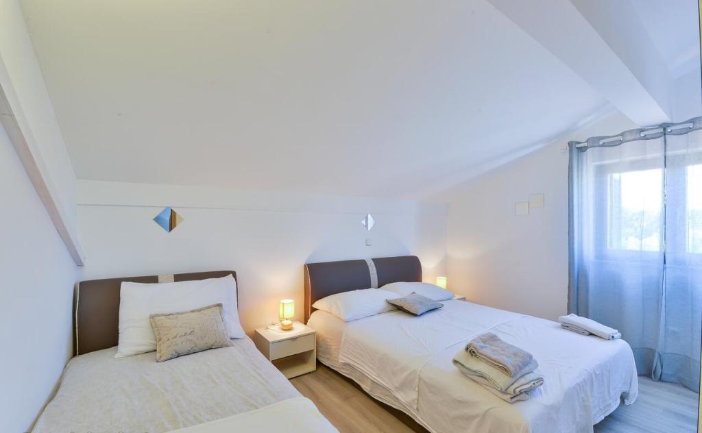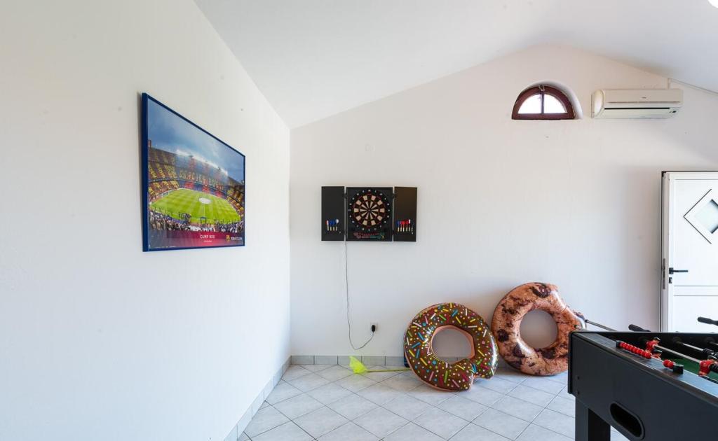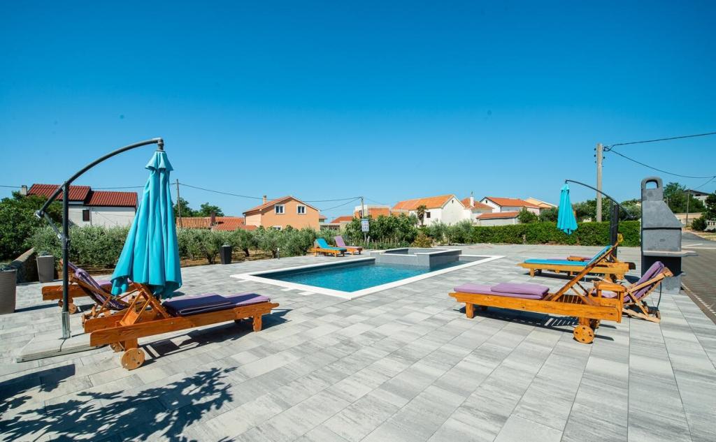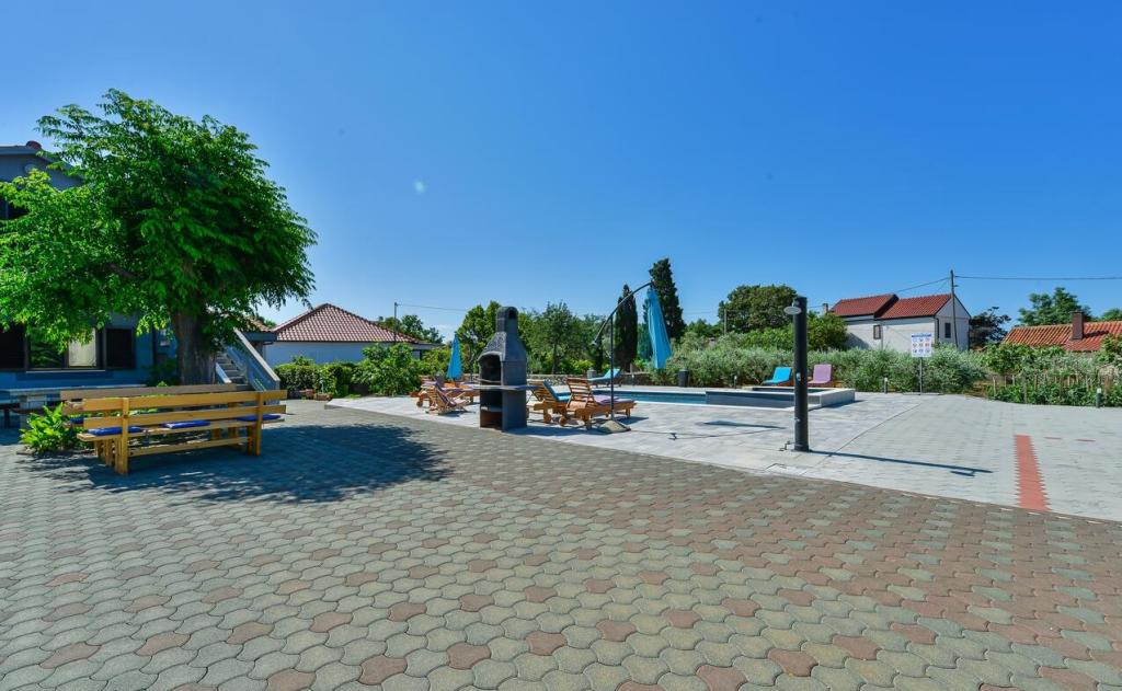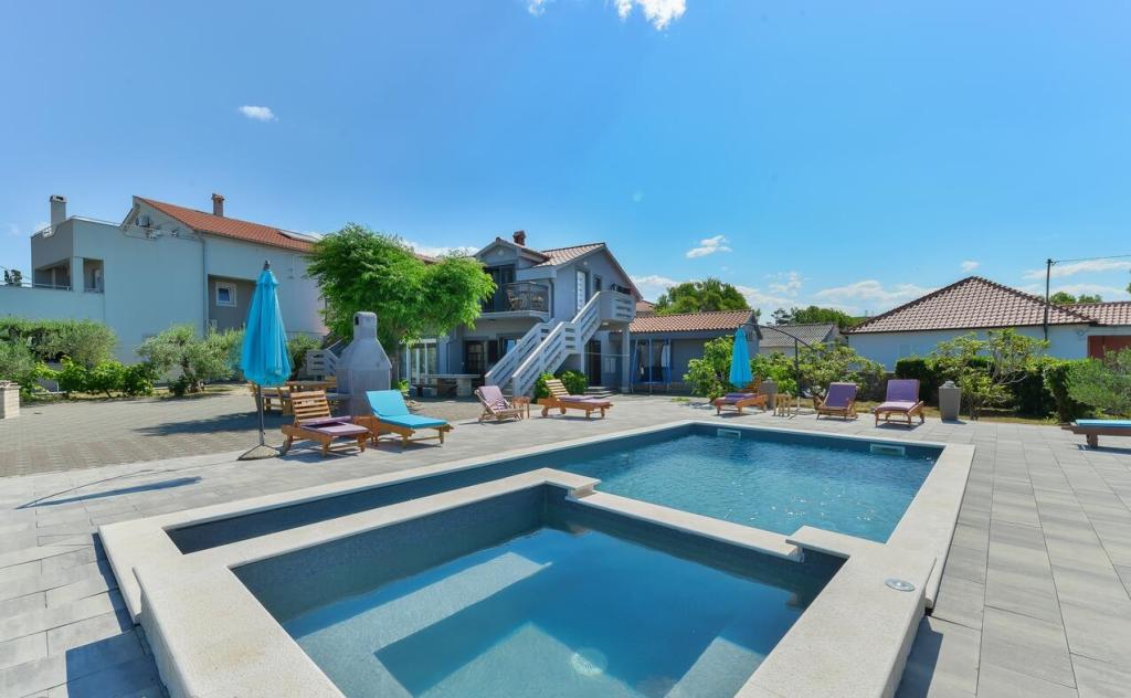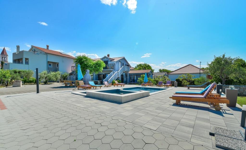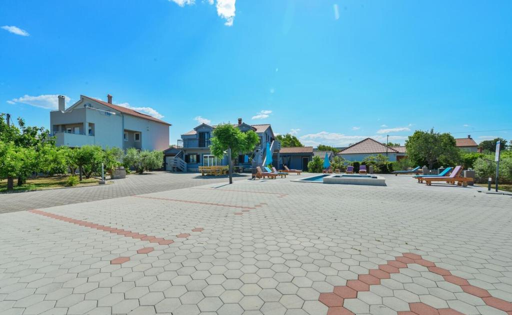 Apartmány se nachází 300 m od moře. Nacházejí se na klidném místě, obklopené olivovníky, bazénem, jacuzzi, grilem, hernou se šipkami a stolním fotbalem. Velký dvůr, oplocený...