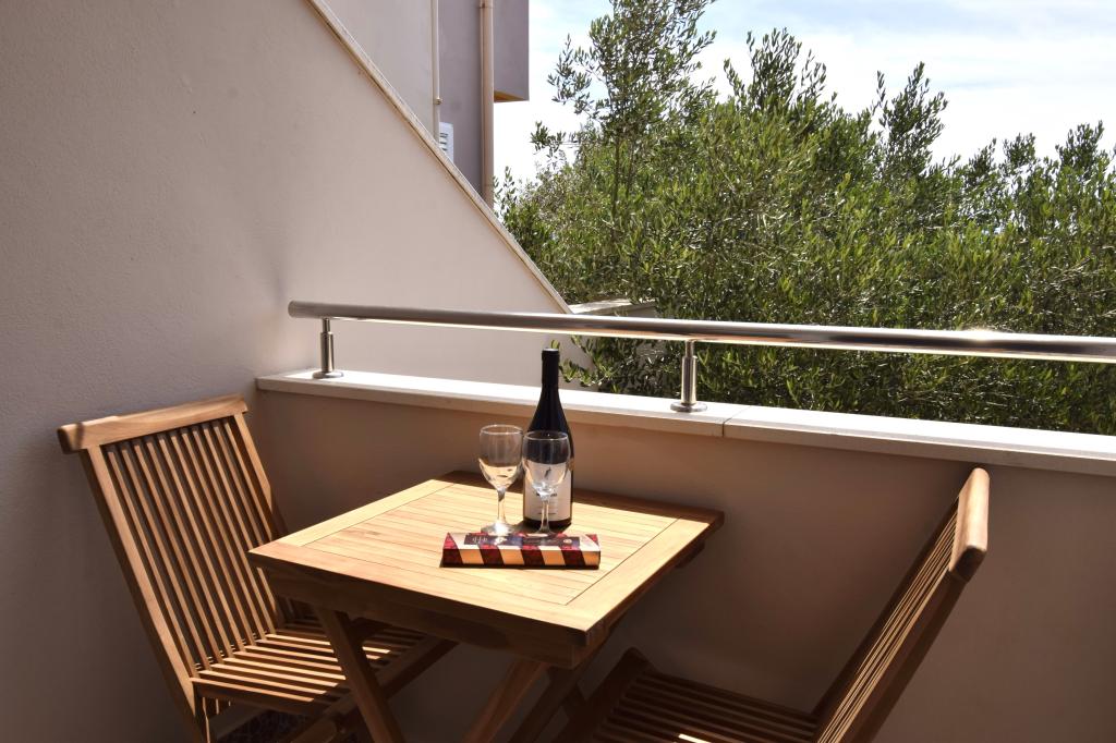 Dům se nachází ve druhé řadě k moři, v klidné vilové čtvrti. Všechny apartmány mají balkon s přímým výhledem na moře. V těsné blízkosti je také sportovní hřiště a dětský park.