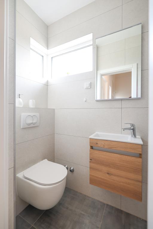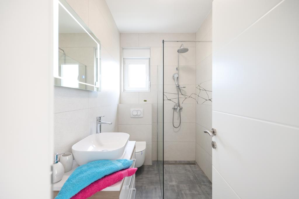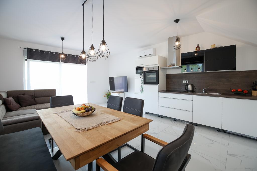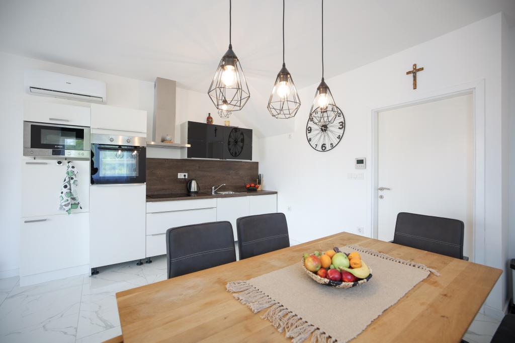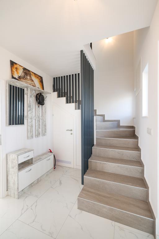 Velmi prostorný prázdninový dům s výhledem na moře a velkou střešní terasou. Moderně zařízené a vybavené klimatizací v každém pokoji. Dům má velký obývací pokoj s jídelnou a terasou, dvě koupelny, dvě ložnice a kuchyňský kout v nejvyšším patře s velkou terasou. Hosté mají k dispozici jedno parkovací místo, bezplatné využívání Wi-Fi internetu a také pravidelnou výměnu ložního prádla a ručníků v případě delšího pobytu. Na nejbližší pláž dojdete za 8 minut a písečná pláž Bilotinjak je vzdálená 1,2 km.