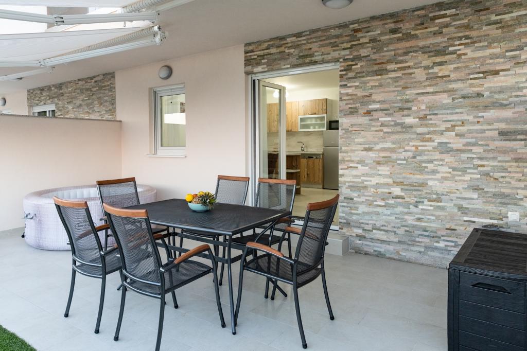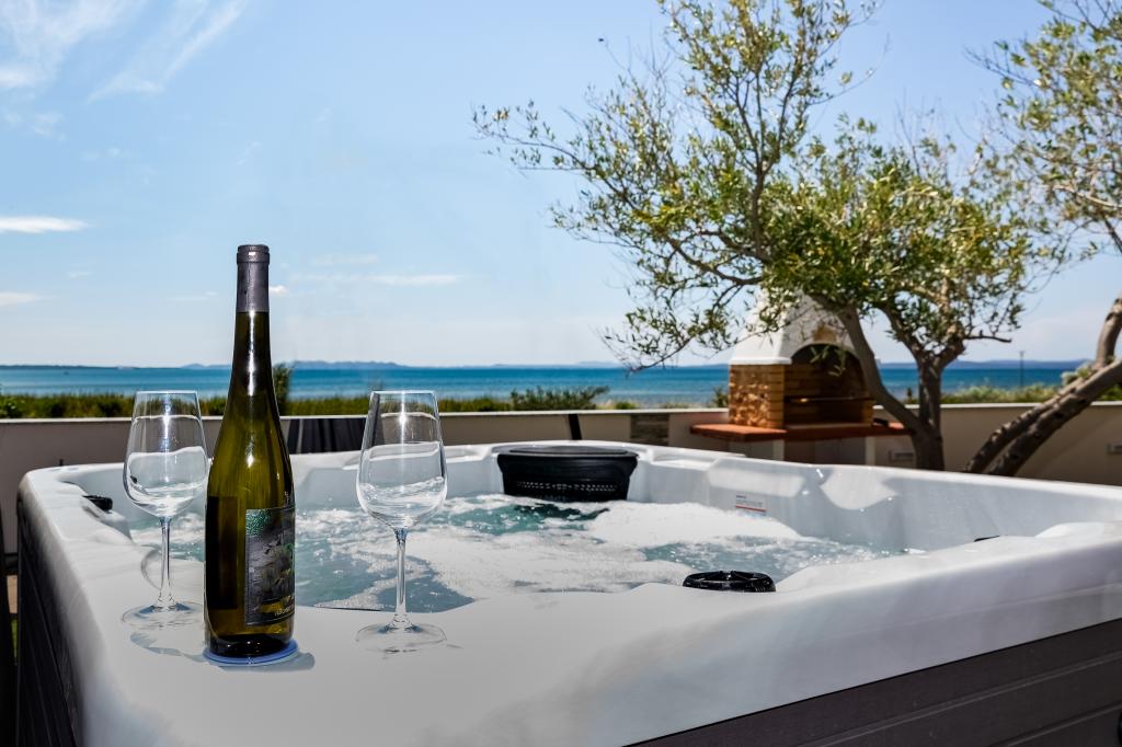 Zcela nová budova (tři domy v řadě), s oddělenými nádvořími, jedinečná poloha podél písečné pláže v zálivu Jazić, vysoký standard dekorace a pohodlí; s hydromasážními bazénky na dvoře (pokud vás nebaví 30 metrů k moři nebo máte rádi bubliny ...) ... je to všechno jen pro to, aby se vám na chvíli zlepšila realita :-) Nechte děti běhat dvoře beze strachu a vítejte na správném místě odpočinku ...