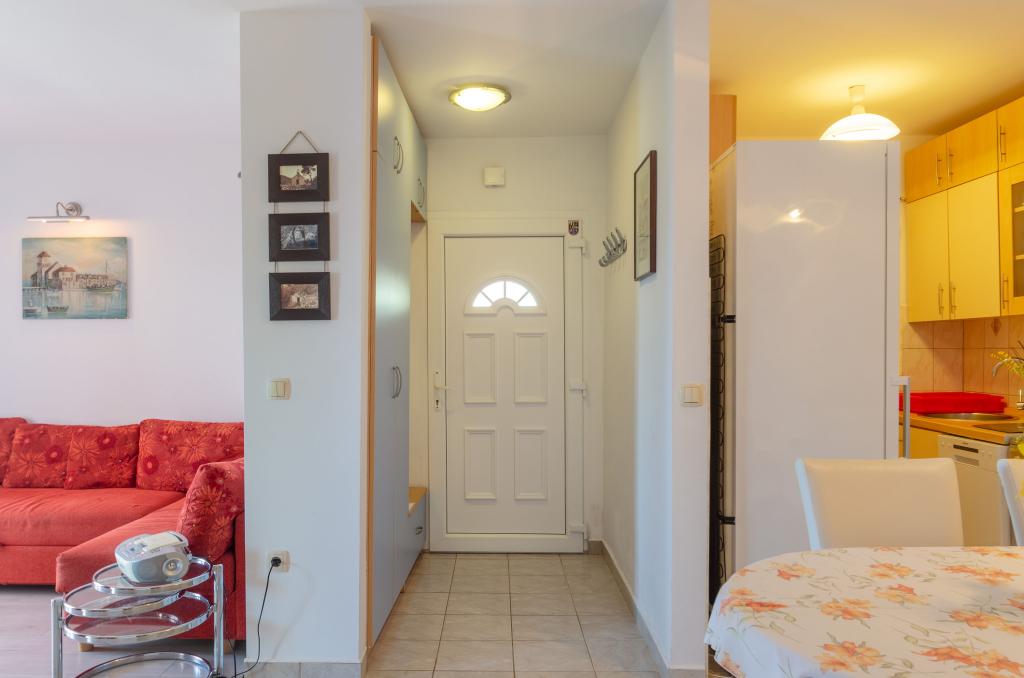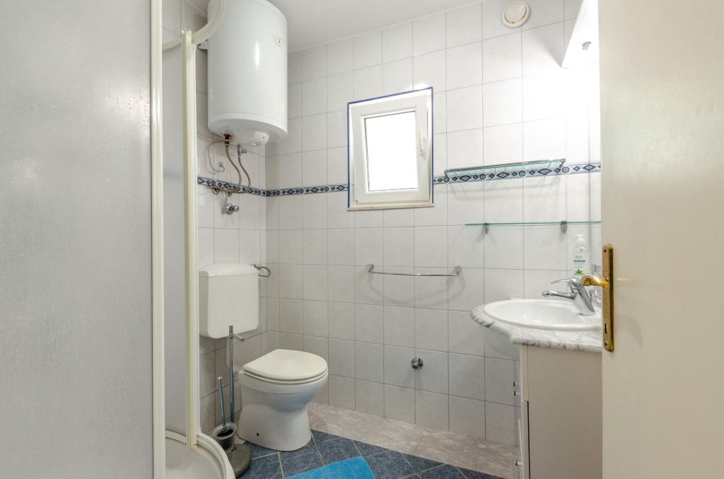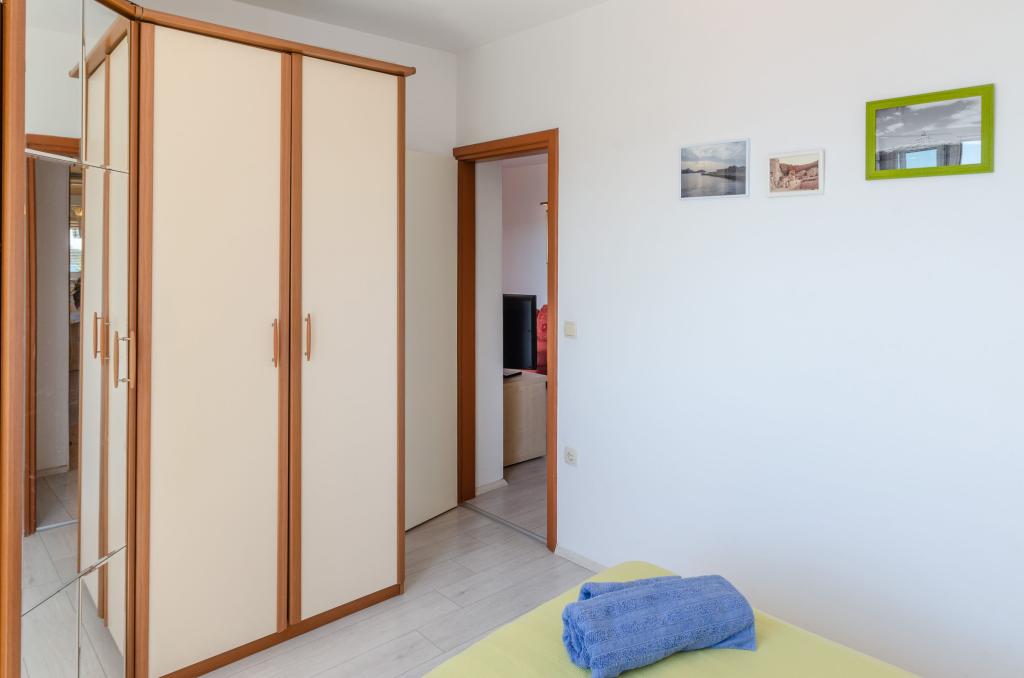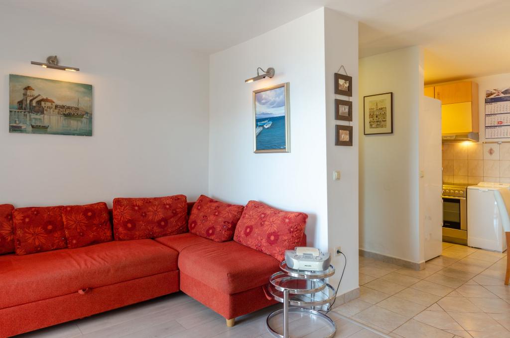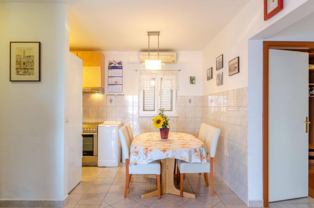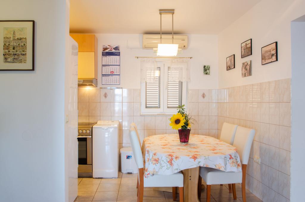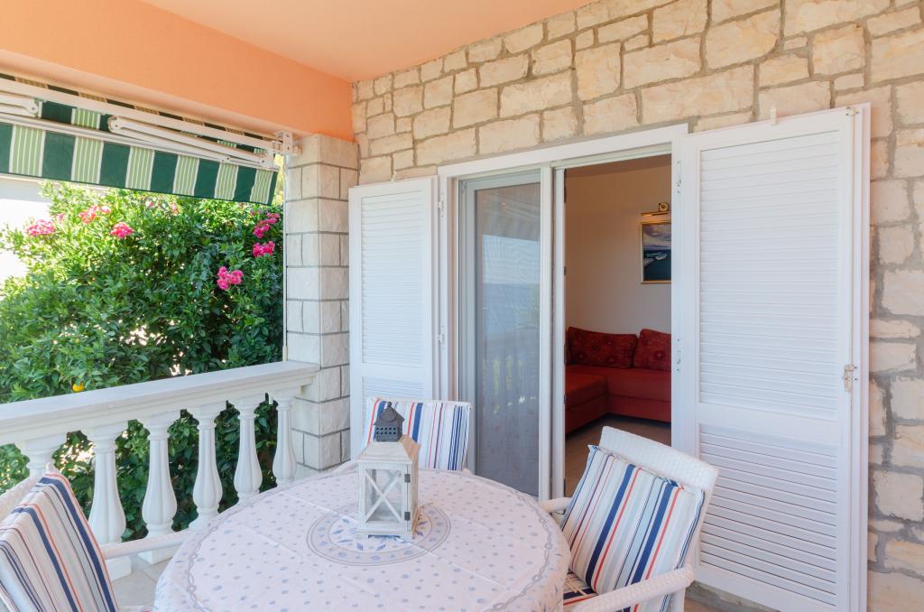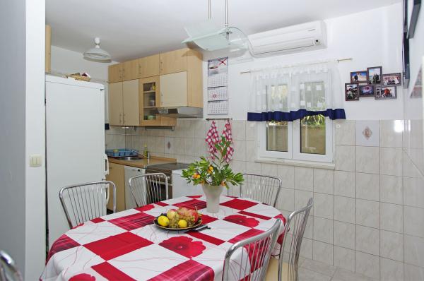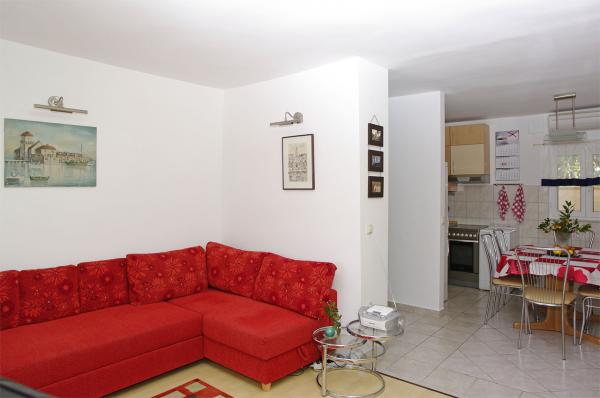 Apartmán v rodinném domě, orientace sever-jih, 30 m od moře, nachází se v prvním patře.Skládá se ze dvou ložnic, obývacího pokoje/jídelny s kuchyní, malé šatny, koupelny/WC a terasy s výhledem na moře z 12 m 2. V blízkosti bytu je obchod s potravinami a do centra Prizby se snadno dostanete pěšky, ke všem ostatním zařízením cca 400 m.