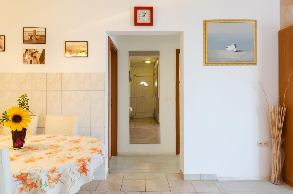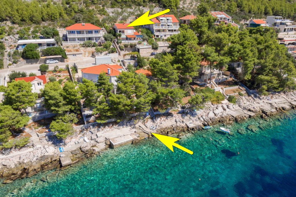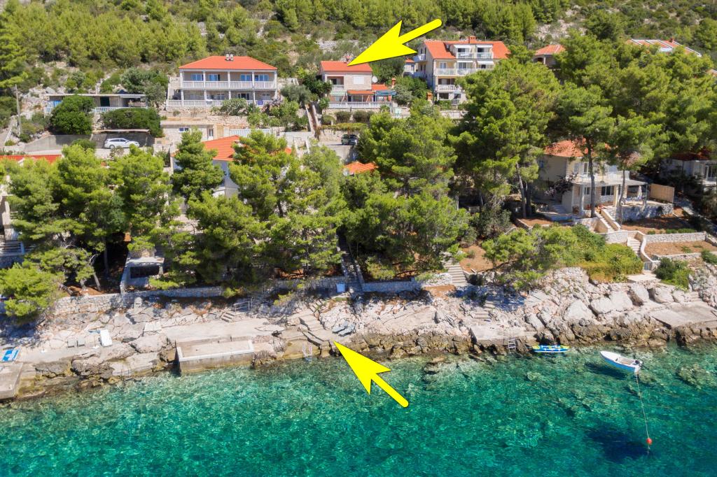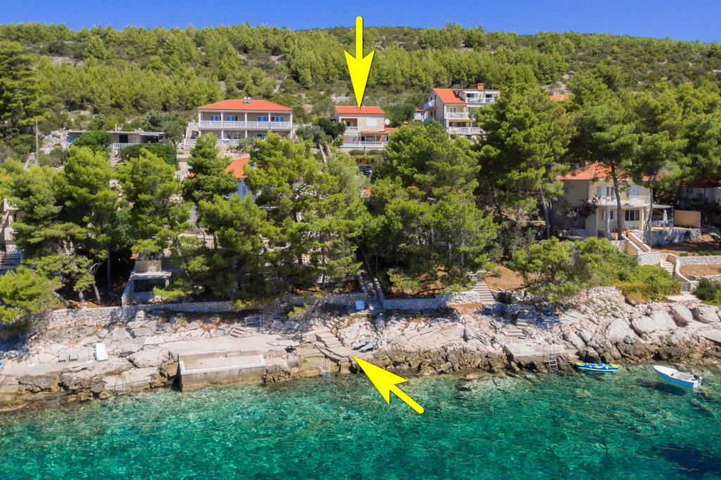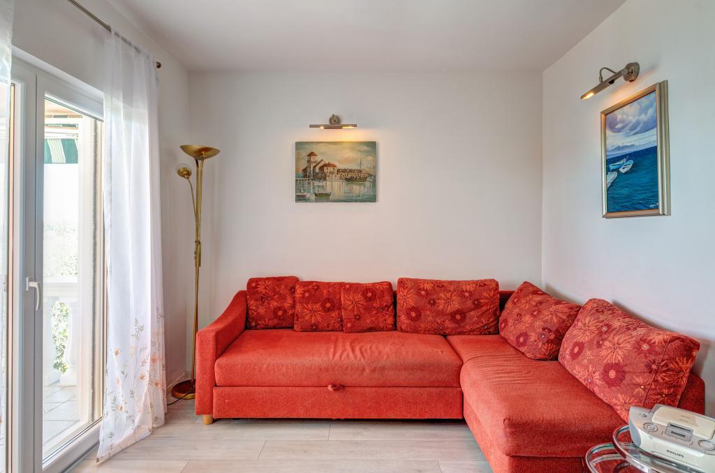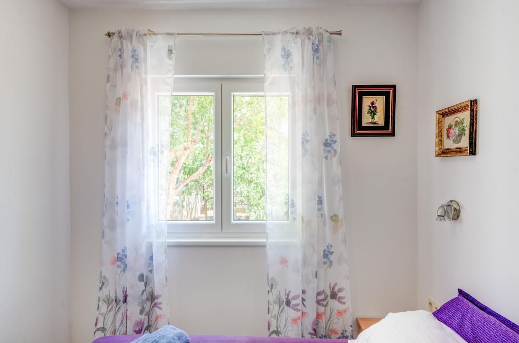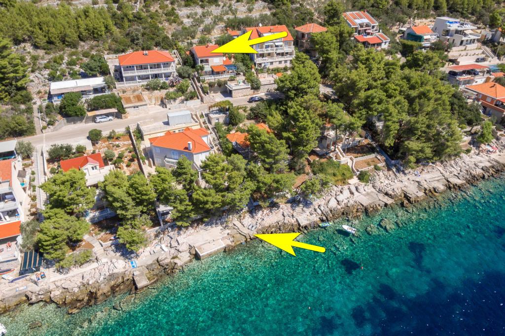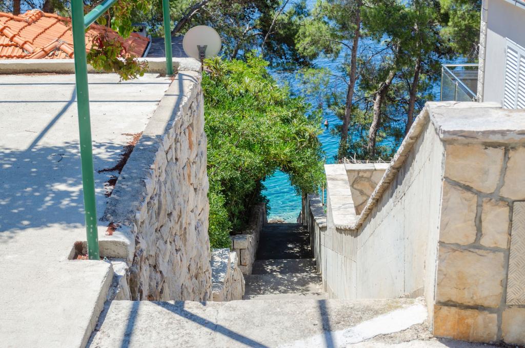 Apartmán v rodinném domě, orientace sever-jih, 30 m od moře, nachází se v prvním patře.Skládá se ze dvou ložnic, obývacího pokoje/jídelny s kuchyní, malé šatny, koupelny/WC a terasy s výhledem na moře z 12 m 2. V blízkosti bytu je obchod s potravinami a do centra Prizby se snadno dostanete pěšky, ke všem ostatním zařízením cca 400 m.