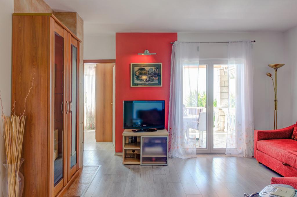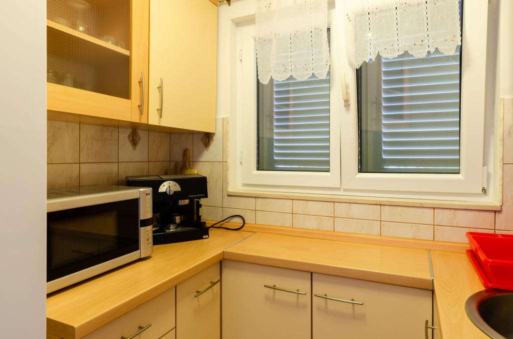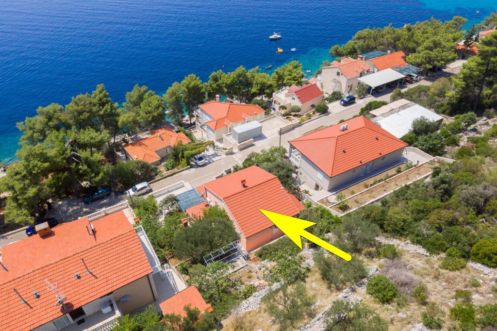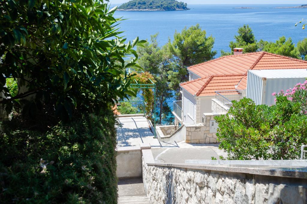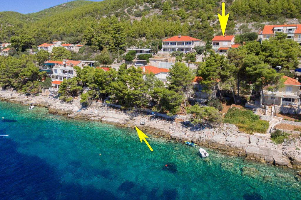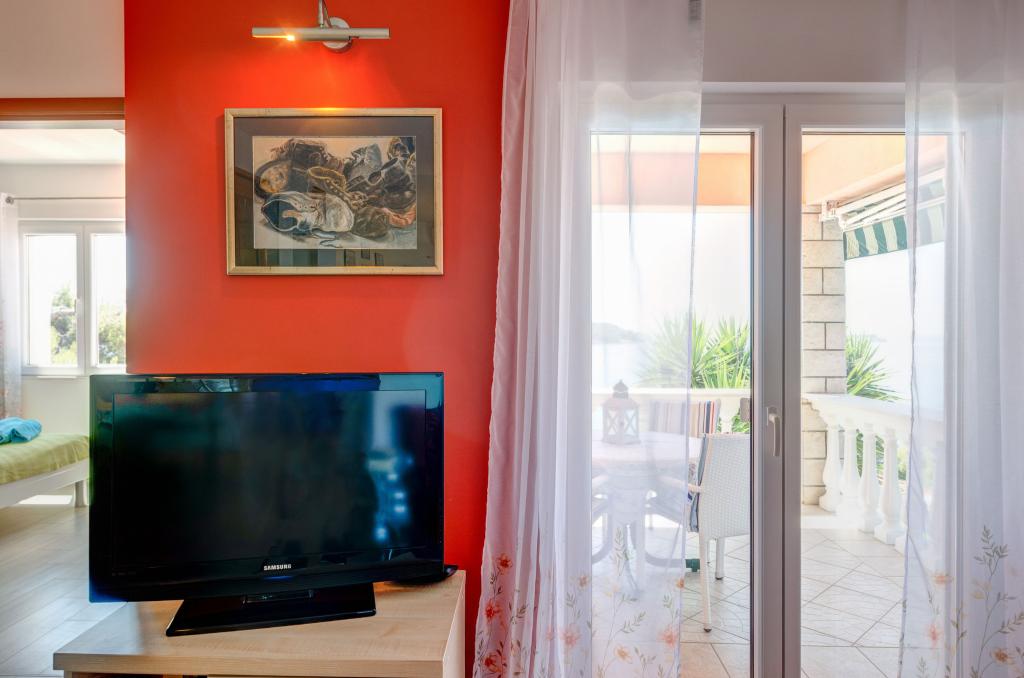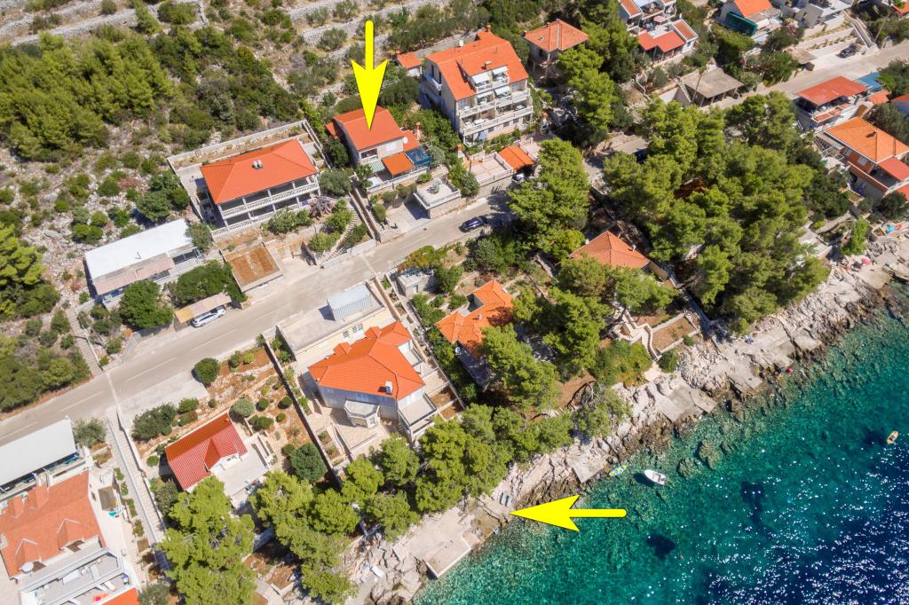 Apartmán v rodinném domě, orientace sever-jih, 30 m od moře, nachází se v prvním patře.Skládá se ze dvou ložnic, obývacího pokoje/jídelny s kuchyní, malé šatny, koupelny/WC a terasy s výhledem na moře z 12 m 2. V blízkosti bytu je obchod s potravinami a do centra Prizby se snadno dostanete pěšky, ke všem ostatním zařízením cca 400 m.