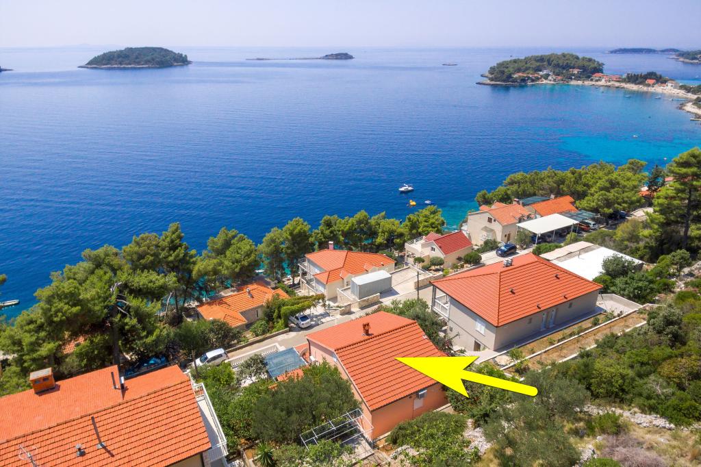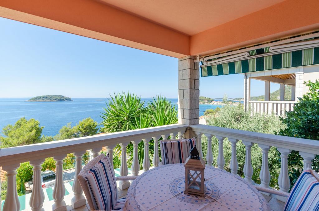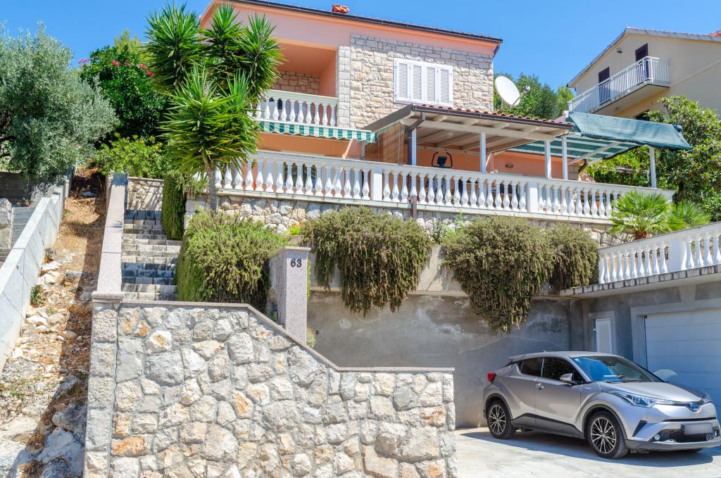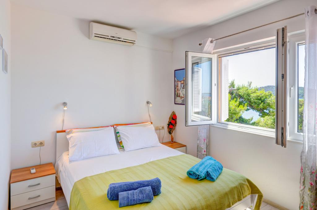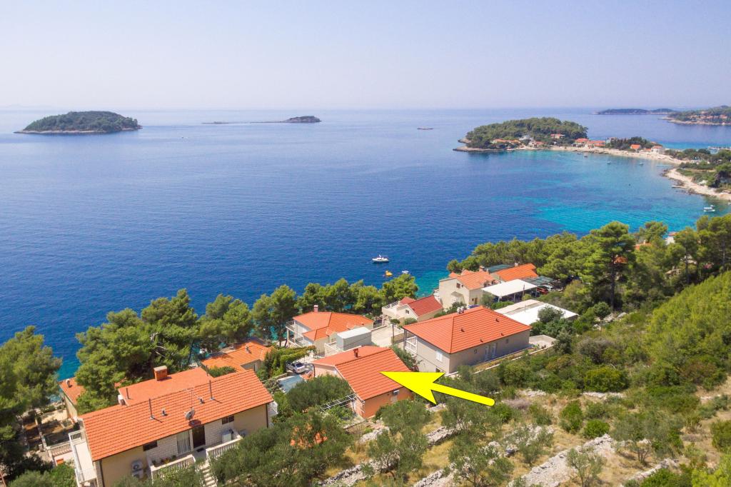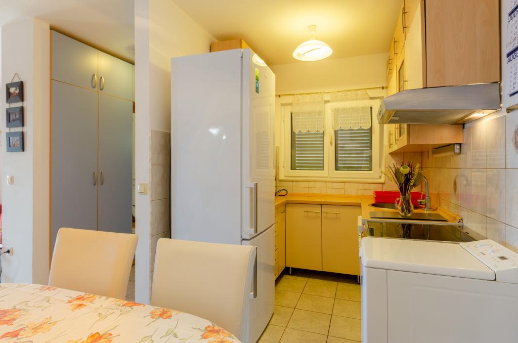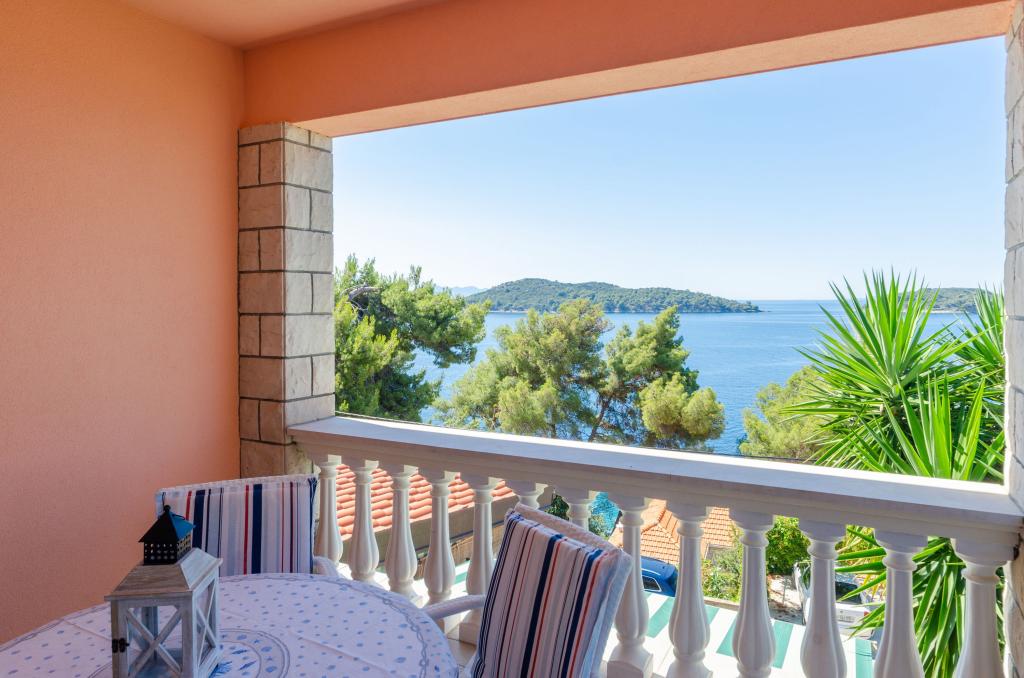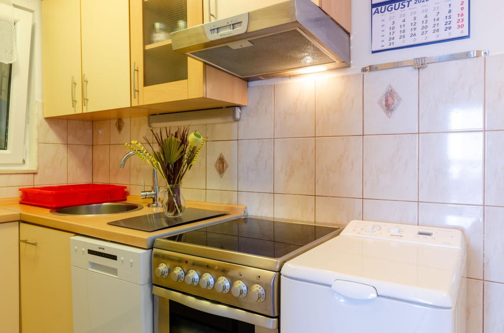Apartmán v rodinném domě, orientace sever-jih, 30 m od moře, nachází se v prvním patře.Skládá se ze dvou ložnic, obývacího pokoje/jídelny s kuchyní, malé šatny, koupelny/WC a terasy s výhledem na moře z 12 m 2. V blízkosti bytu je obchod s potravinami a do centra Prizby se snadno dostanete pěšky, ke všem ostatním zařízením cca 400 m.