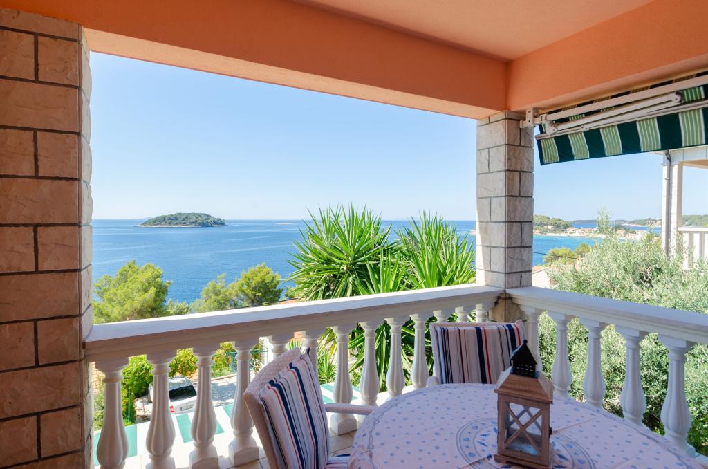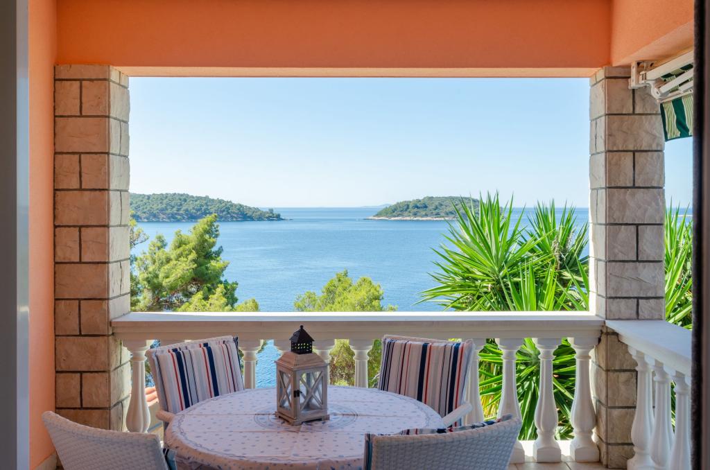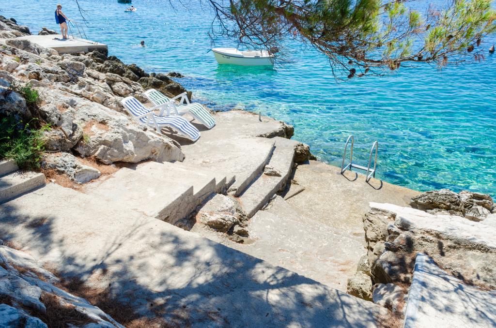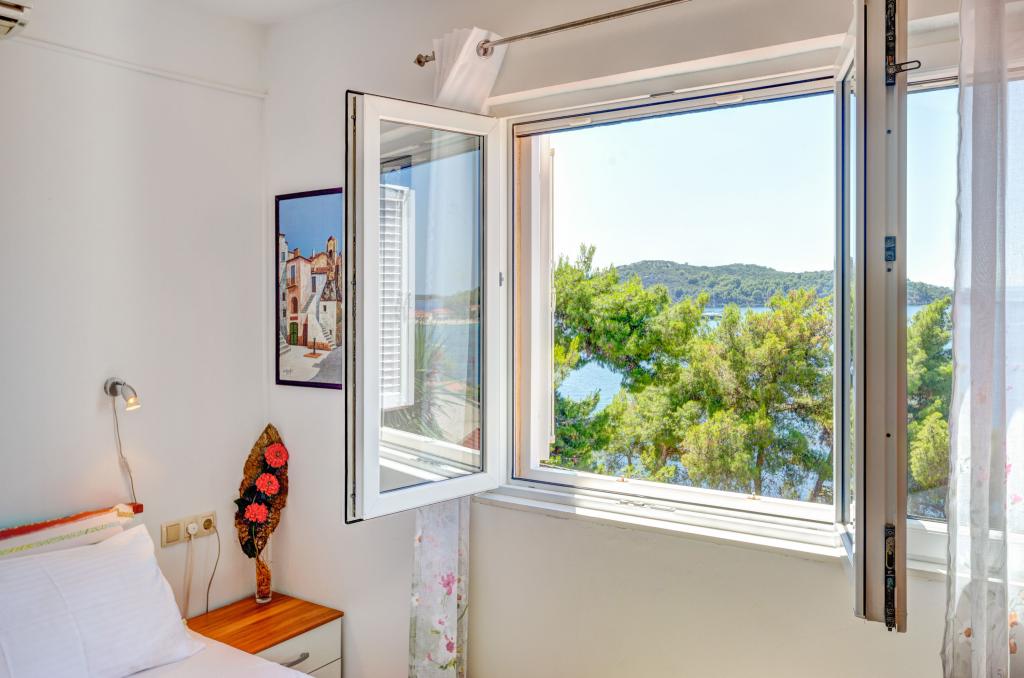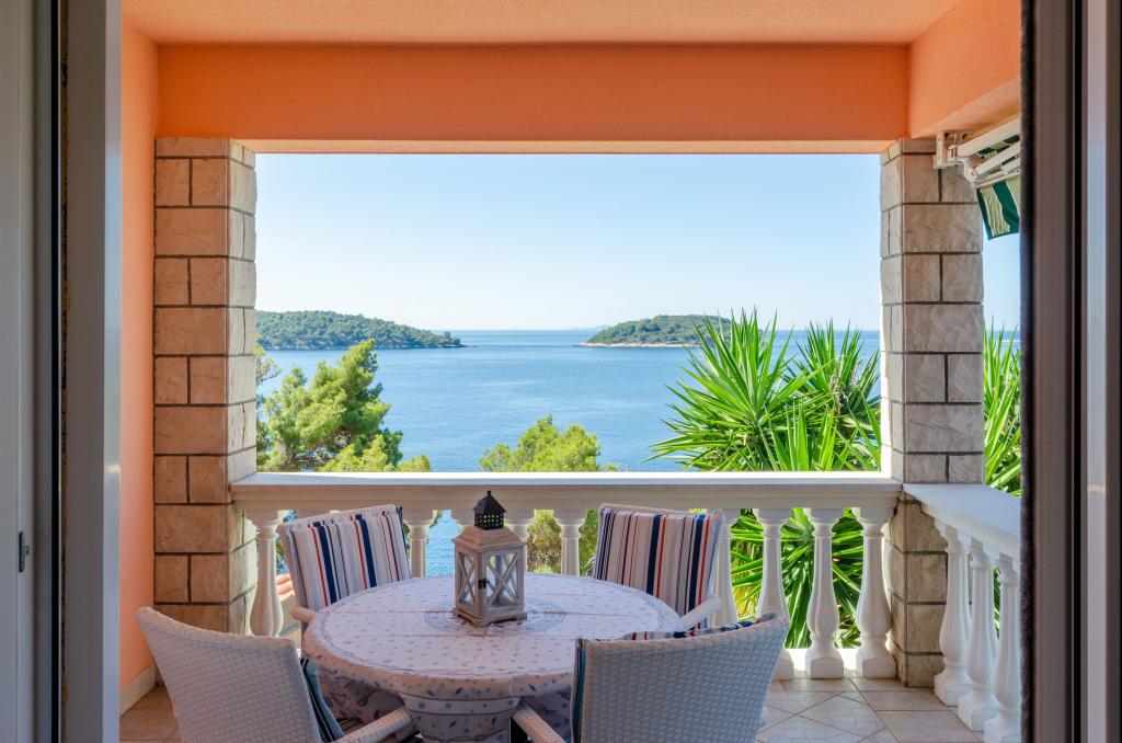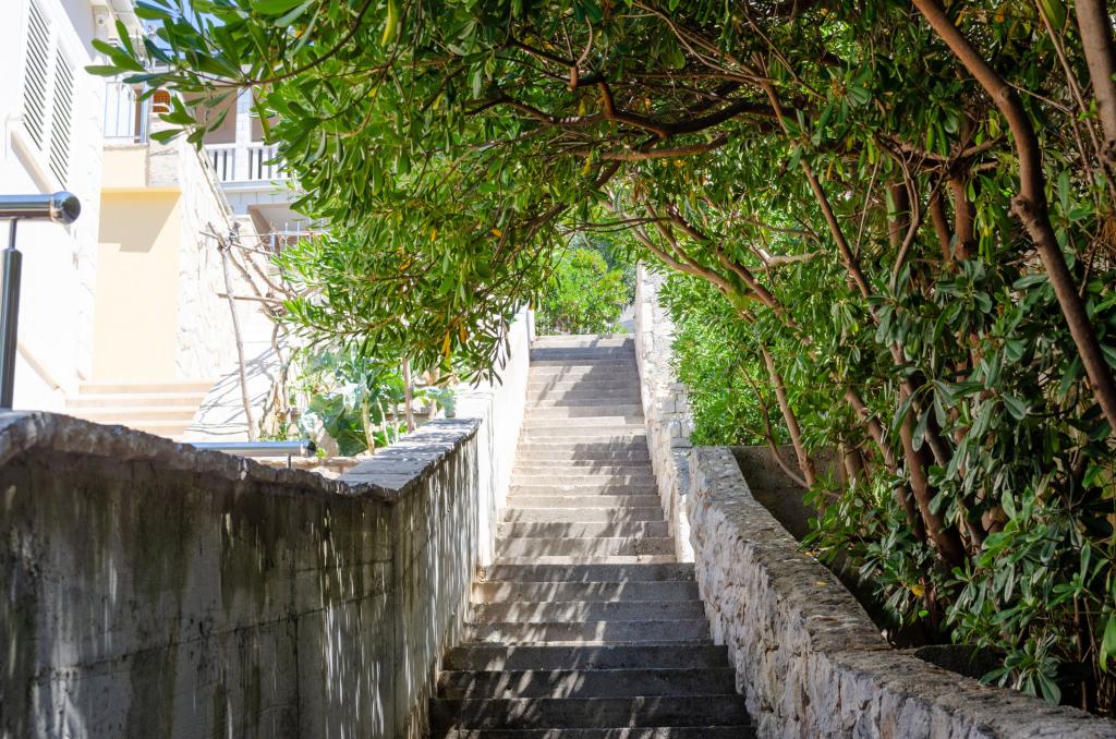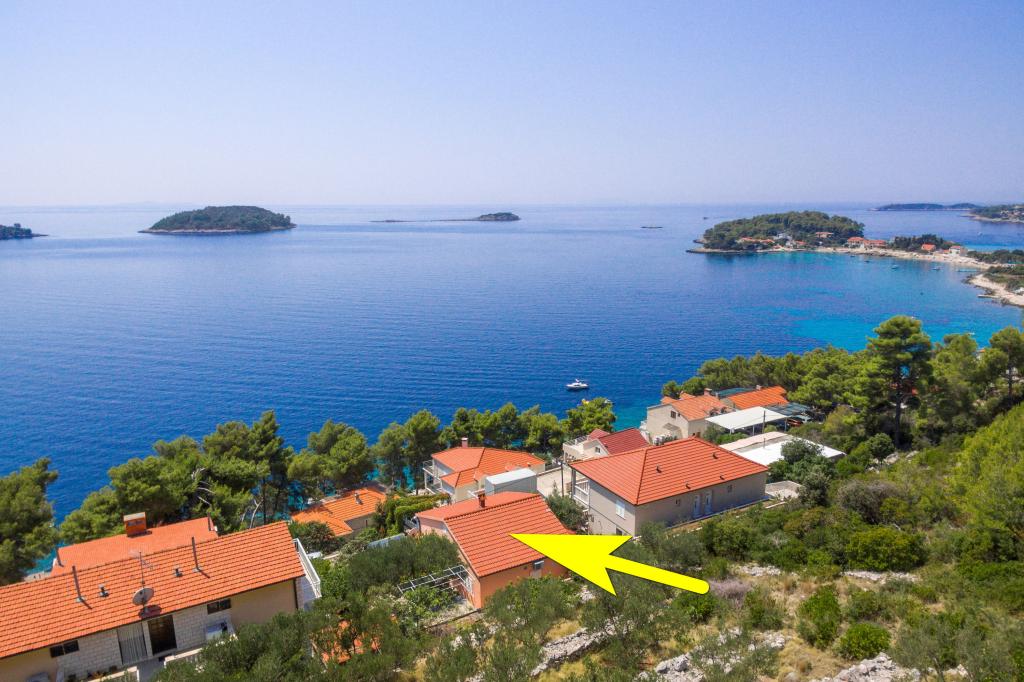 Apartmán v rodinném domě, orientace sever-jih, 30 m od moře, nachází se v prvním patře.Skládá se ze dvou ložnic, obývacího pokoje/jídelny s kuchyní, malé šatny, koupelny/WC a terasy s výhledem na moře z 12 m 2. V blízkosti bytu je obchod s potravinami a do centra Prizby se snadno dostanete pěšky, ke všem ostatním zařízením cca 400 m.