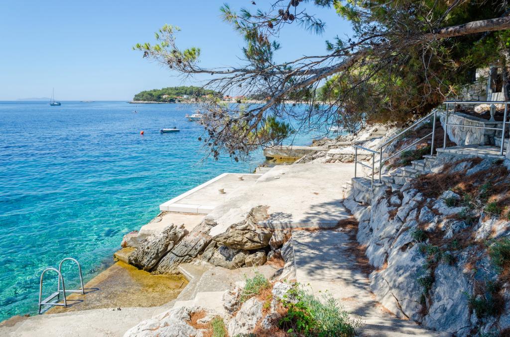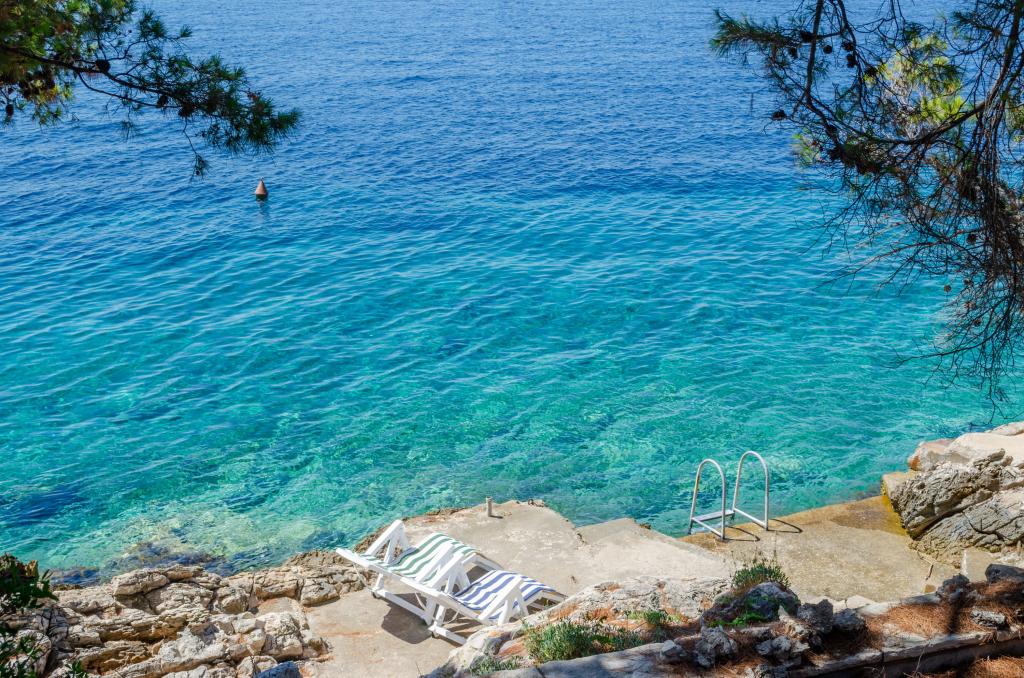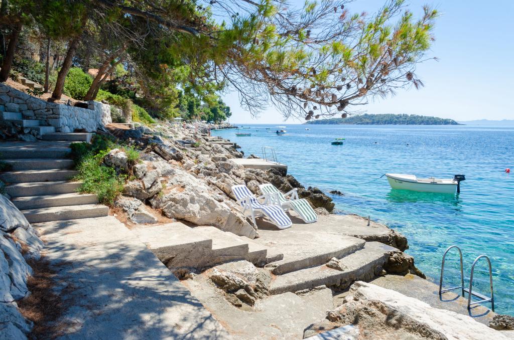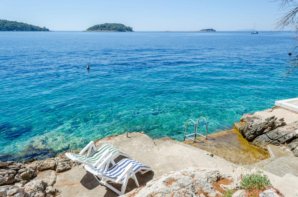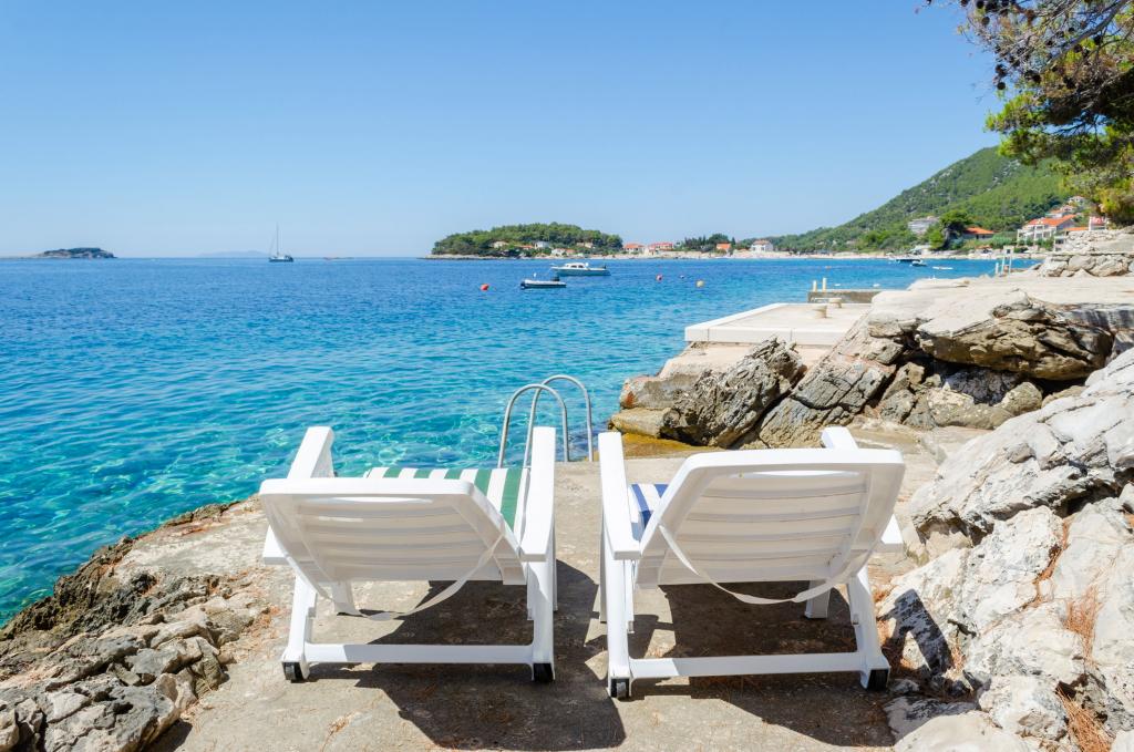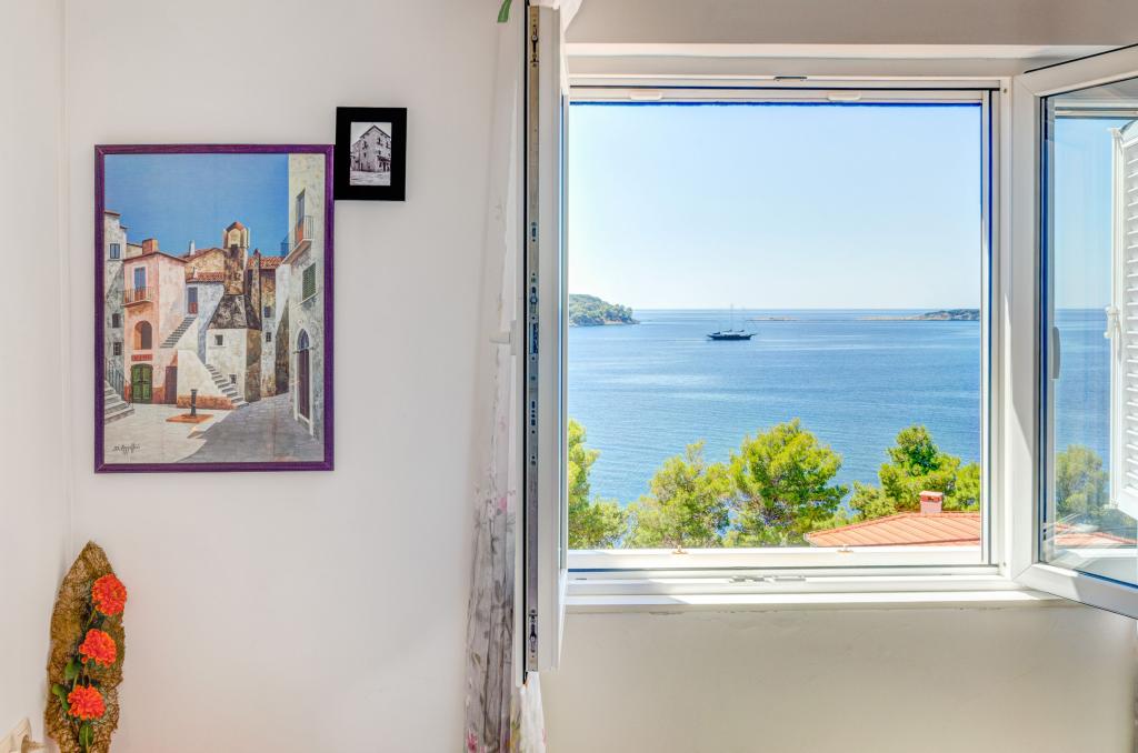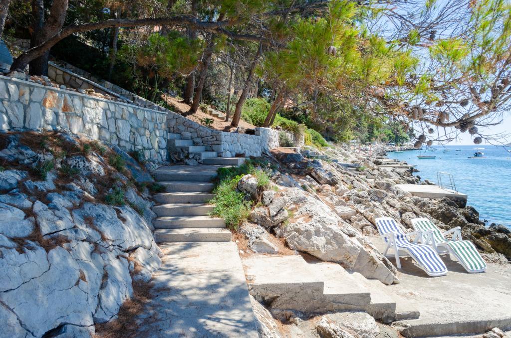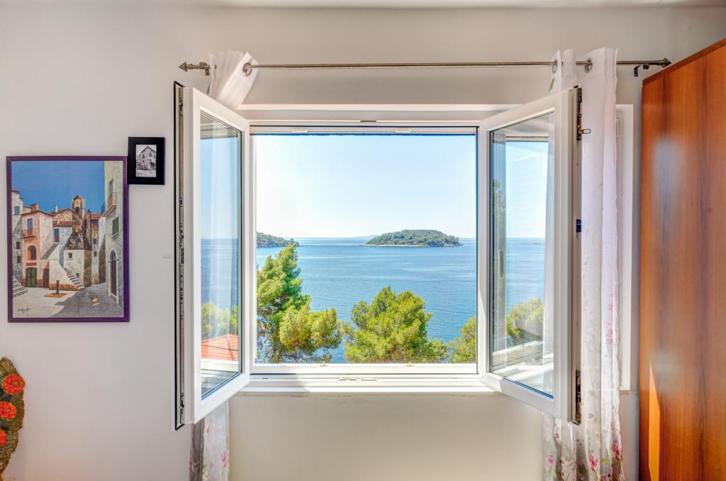 Apartmán v rodinném domě, orientace sever-jih, 30 m od moře, nachází se v prvním patře.Skládá se ze dvou ložnic, obývacího pokoje/jídelny s kuchyní, malé šatny, koupelny/WC a terasy s výhledem na moře z 12 m 2. V blízkosti bytu je obchod s potravinami a do centra Prizby se snadno dostanete pěšky, ke všem ostatním zařízením cca 400 m.