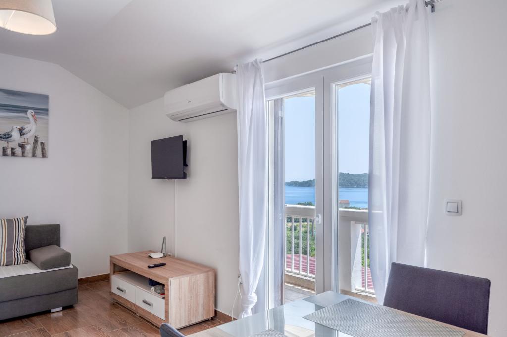 Apartmány Prižba Bumba jsou soukromé ubytování na ostrově Korčula, v městečku Prižba se 3 apartmány. Nacházejí se 100 metrů od pláže. V blízkosti pláže typu žal. Apartmány mají klimatizaci, internet, gril, parkování. Z balkonu je krásný výhled na poloostrov Ratak a malé ostrovy. Nejbližší pláž (m): 100 Typ nejbližší pláže: betonové desky, žal Vzdálenost k nejbližší oblázkové pláži (m): 100 Centrum města (m): 100 Restaurace (m): 100 Obchod (m): 300 Pošta: Blato, 10km Sanitka: Blato, 10km Trajektový přístav: Vela Luka, 17,5 km Apartmán č. 1 je velký apartmán se 2 ložnicemi a klimatizace se nachází v každém pokoji.