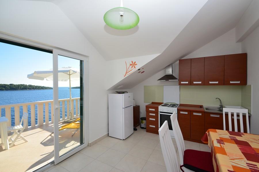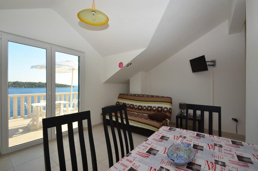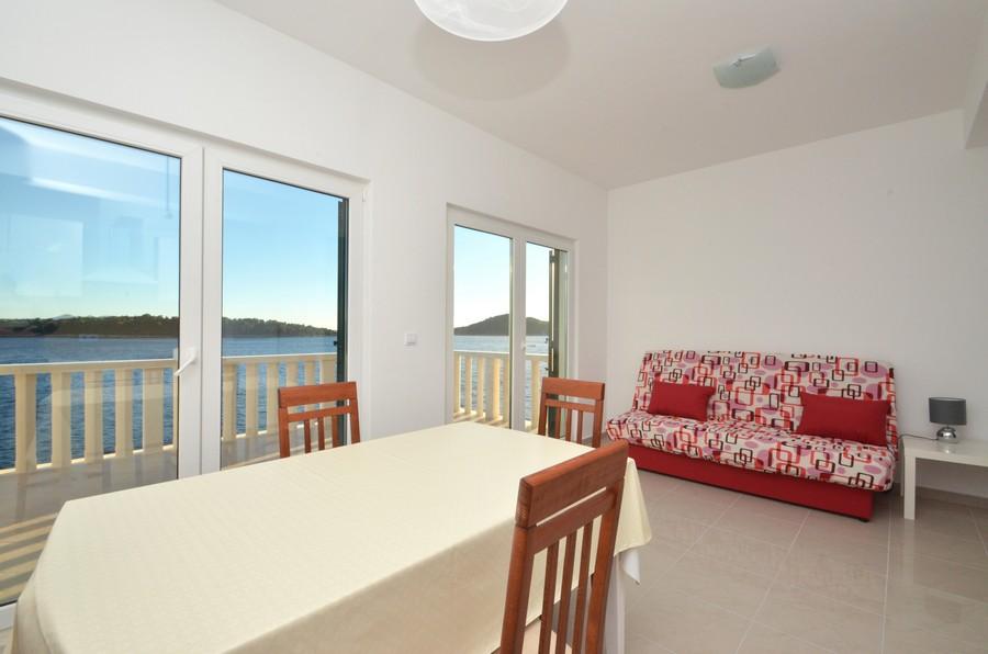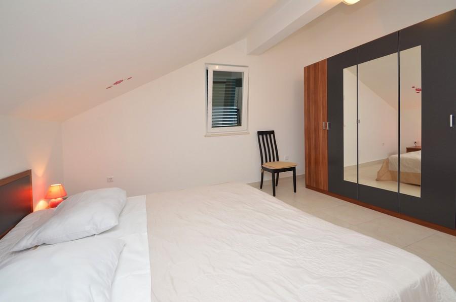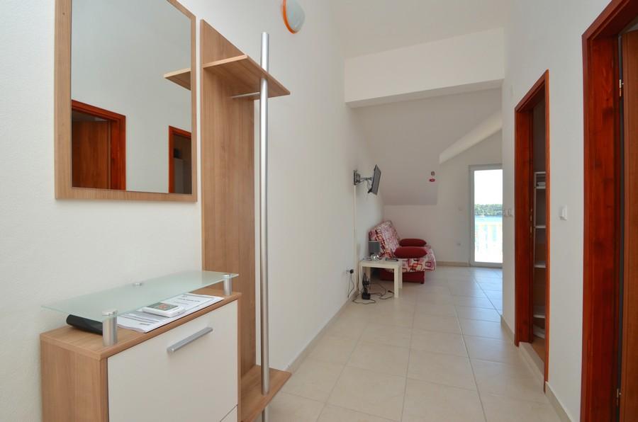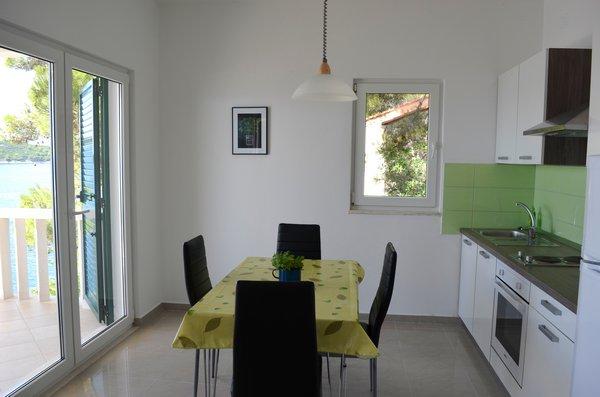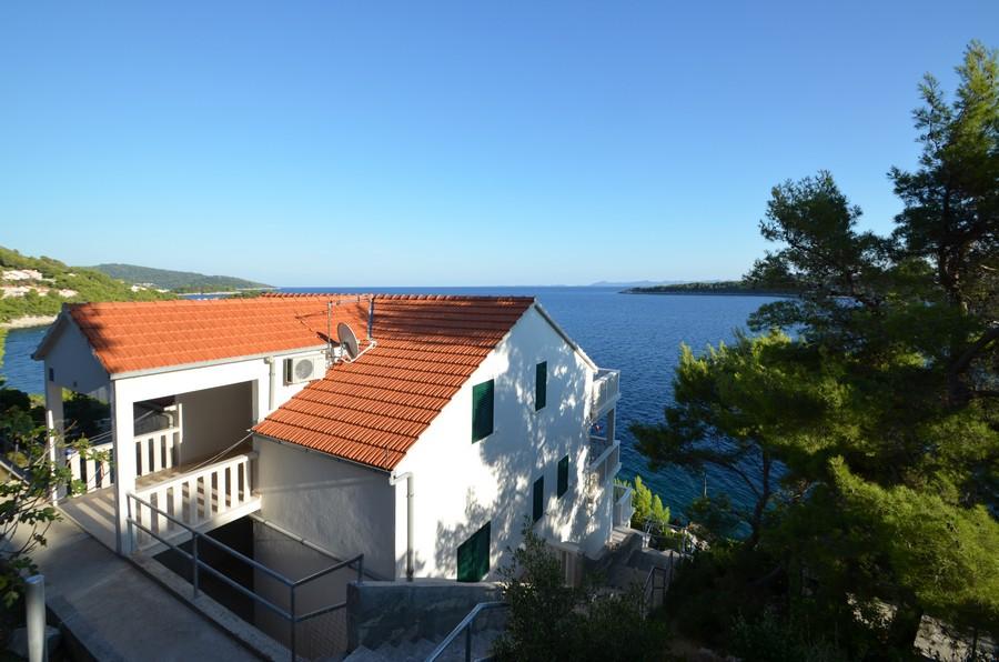 Dům se nachází u moře na klidném místě. Apartmány jsou nové a dobře vybavené. V přední části domu je velké parkoviště, zdarma a útulné pro všechny naše hosty. Každý apartmán má vlastní terasu s výhledem na moře a ostrůvky. V blízkosti jsou dvě soukromé pláže s bezplatnými slunečníky a lehátky, škola potápění, škola plachtění, půjčovna lodí, moped, kánoe, různé restaurace, krásné turistické a cyklistické stezky.