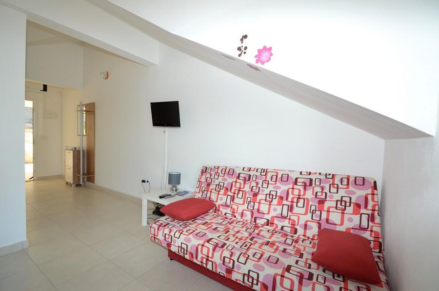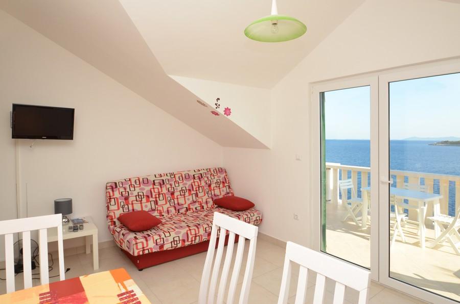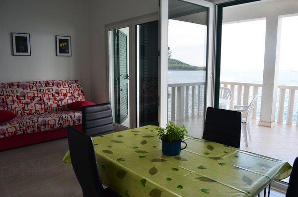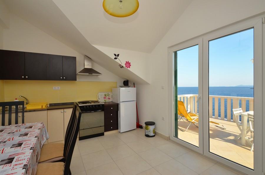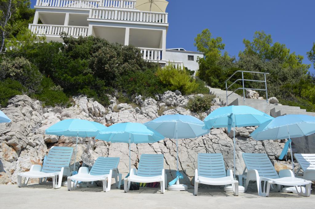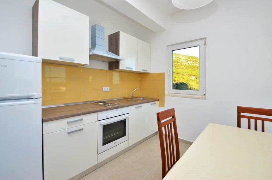 Dům se nachází u moře na klidném místě. Apartmány jsou nové a dobře vybavené. V přední části domu je velké parkoviště, zdarma a útulné pro všechny naše hosty. Každý apartmán má vlastní terasu s výhledem na moře a ostrůvky. V blízkosti jsou dvě soukromé pláže s bezplatnými slunečníky a lehátky, škola potápění, škola plachtění, půjčovna lodí, moped, kánoe, různé restaurace, krásné turistické a cyklistické stezky.