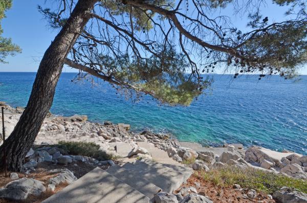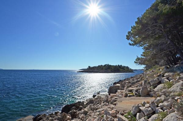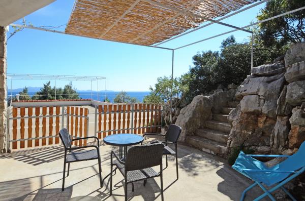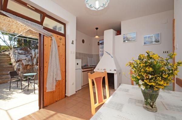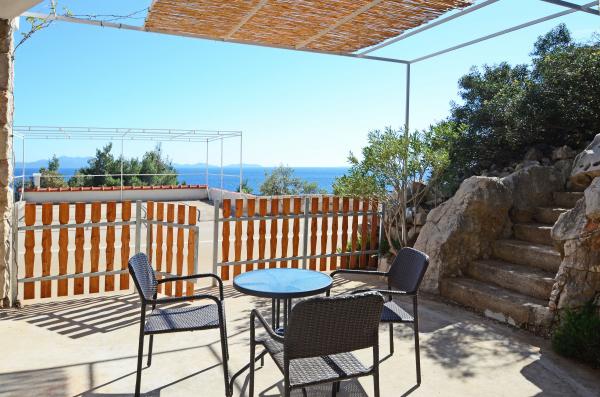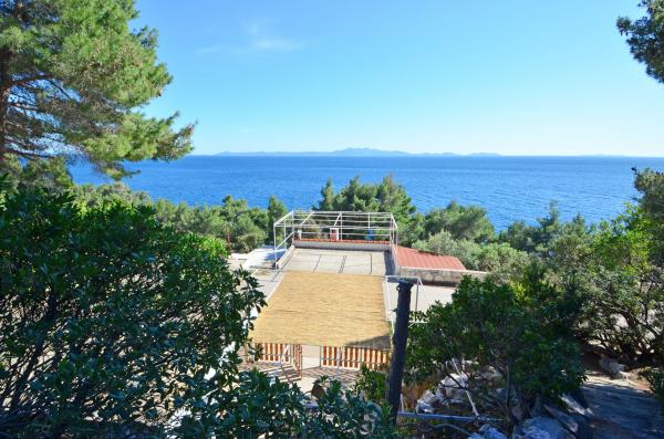 Rodinný dům na pozemku, obklopen borovicemi a typickou středomořskou vegetací, která nabízí úchvatný výhled na rozlehlosti moře, zcela čisté moře a Lastovo ostrovy. To představuje ideální volbou pro vás, kde si klidné sebe a s vybranými absorbují pachy Adriatic a síla od pláže a muly, který byl od domu 50 metrů a plavat do neobydlených ostrovů od pevniny 30 metrů. Místnost je malá konstrukce, vhodná pro pěší turistiku, cykloturistiku a další spotřebu v izolaci, krásné Korčula. K dispozici jsou dvě ložnice, jeden dvoulůžkový a jeden jednolůžkový, stejně jako možnost přistýlky v obývacím pokoji. Má vnitřní a venkovní krb a dvě terasy pro venkovní zábavu s výhledem na moře.