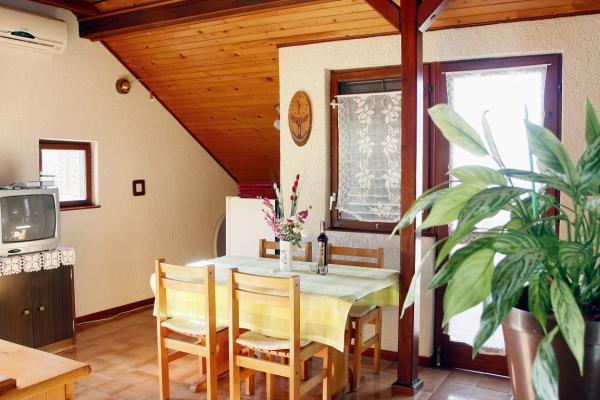 Dvoupokojový apartmán pro čtyři nebo pět osob, plně zařízený a vybavený. Každá ložnice má dvě postele a je možné použít přistýlku. Kuchyň, jídelna, obývací pokoj, koupelna, terasa s krásným výhledem na moře a horu Biokovo. Byt se nachází ve třetím patře. Před domem je pro všechny hosty k dispozici zahrada a gril. Zařízení je kousek od pláže a centra Promajny. Všechna další nezbytná zařízení jsou v bezprostřední blízkosti.