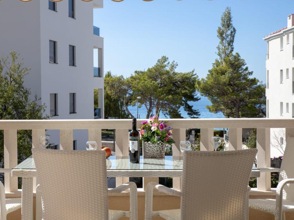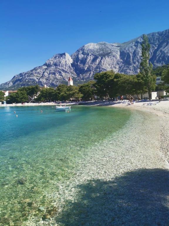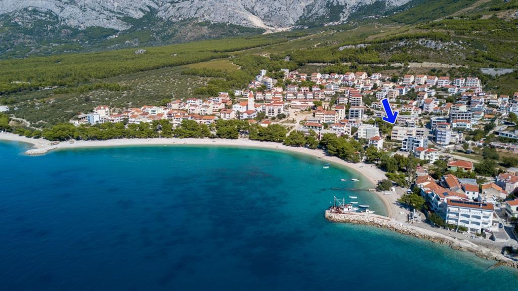 Apartmán "Krissi" se nachází v Promajně. Pouze 50 m od moře a krásné oblázkové pláže bohaté na přírodní stín, trhu, restaurací a kaváren. S Baškou Vod je spojeno promenádou přes nádherný borový les. Makarska je 6 km daleko. Apartmán Krissi (2+2) je plně vybavený a obsahuje 2 ložnice, obývací pokoj s kuchyní s myčkou, lednicí, pračkou, trezorem, TV, WIFI/internet, koupelna se sprchou a fénem.Balkon/Lodžie s výhledem na moře.