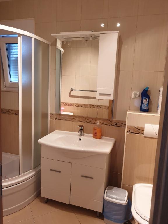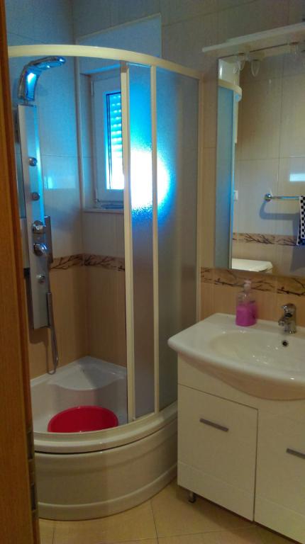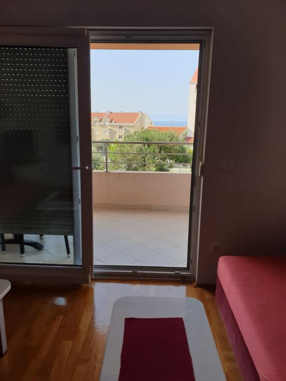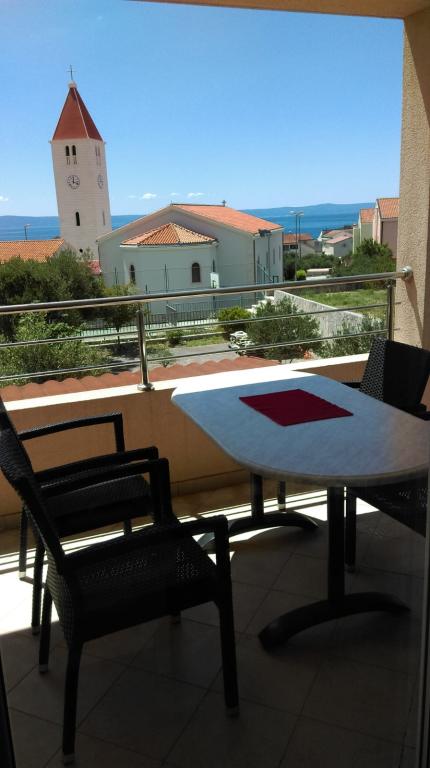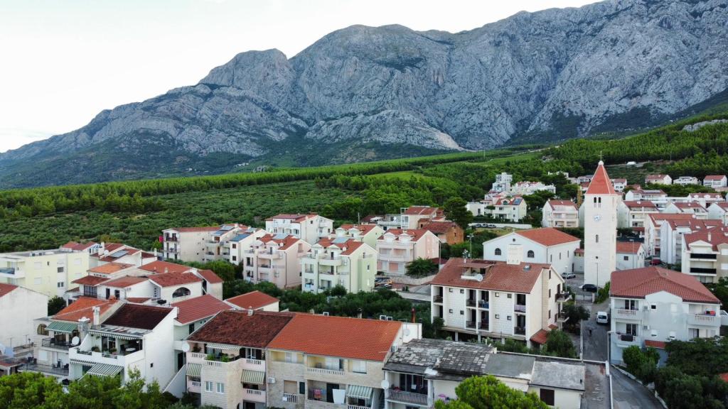 Apartmán S2 (2+2) se nachází v městečku Promajna, v centru města, těsně nad (severně) kostelem - cca 100 m od hlavní pláže, na adrese Prilaz obali 24. Parkování pro jedno auto je vedle apartmánu.