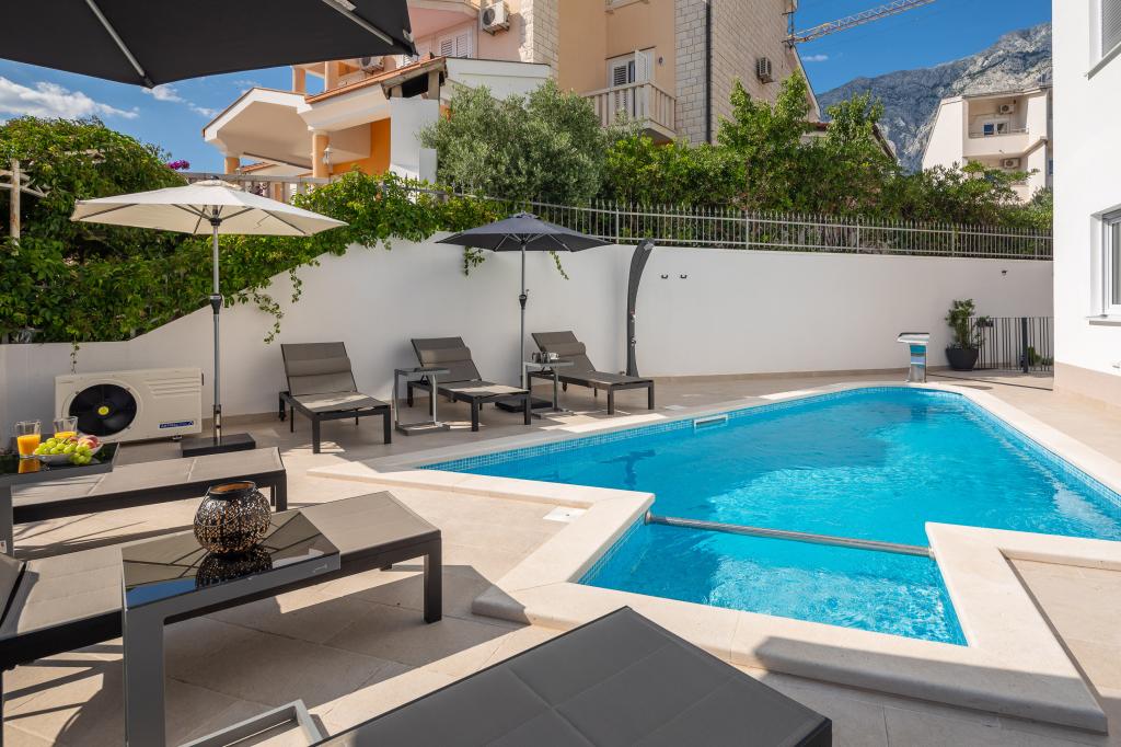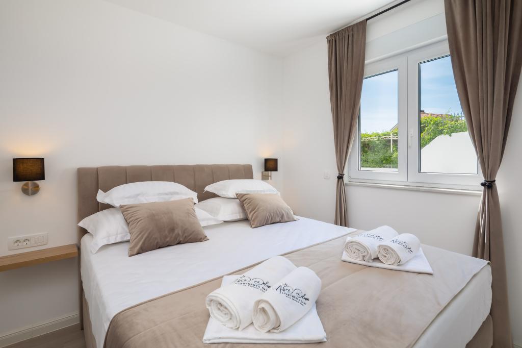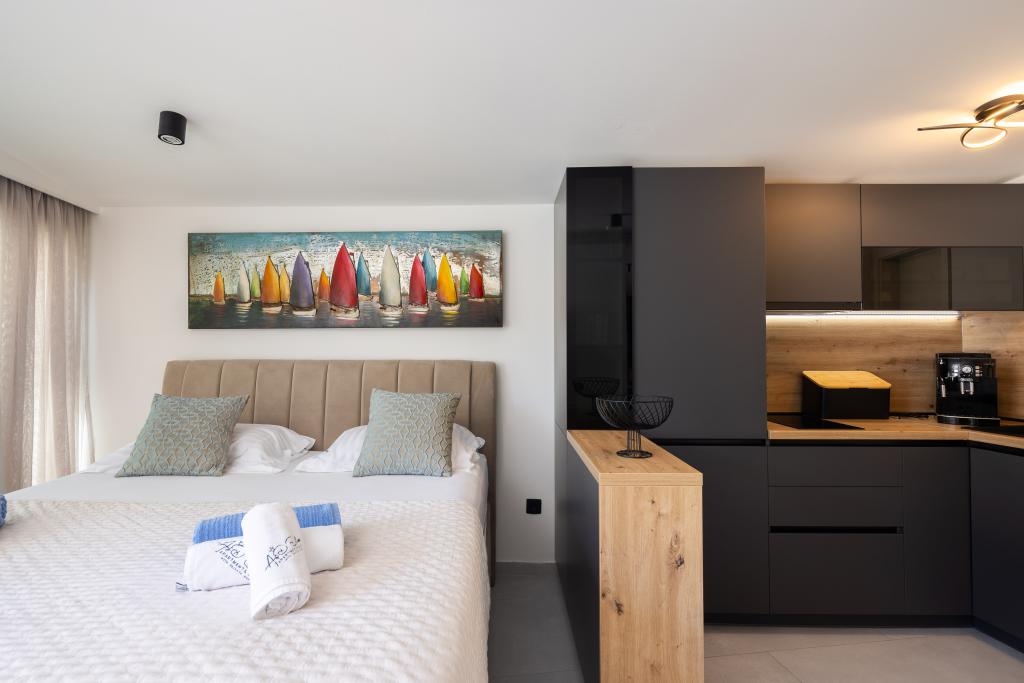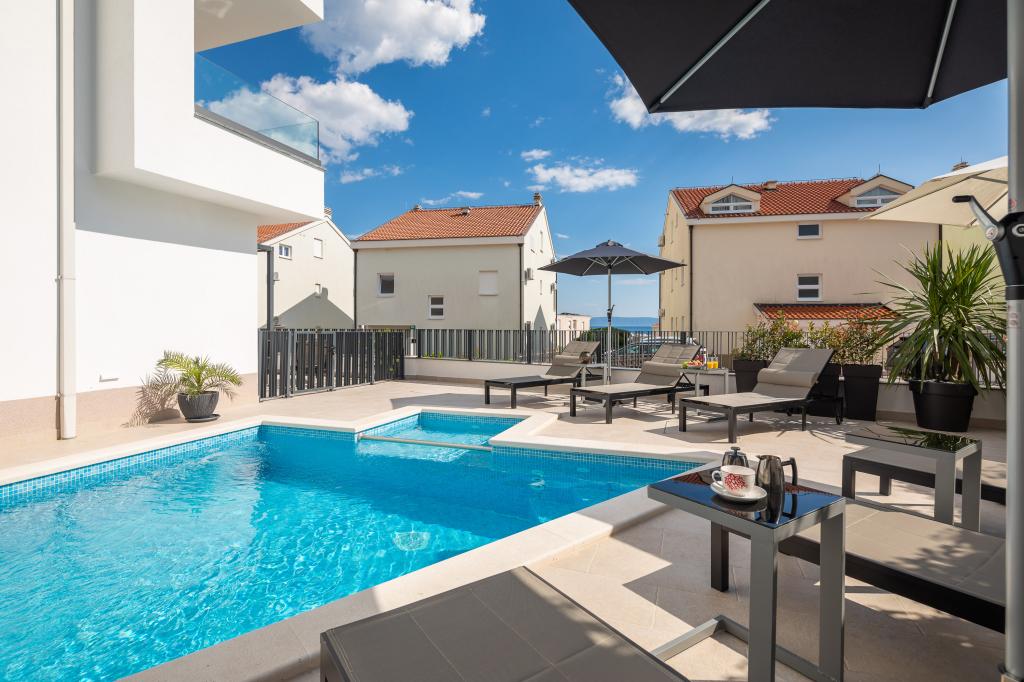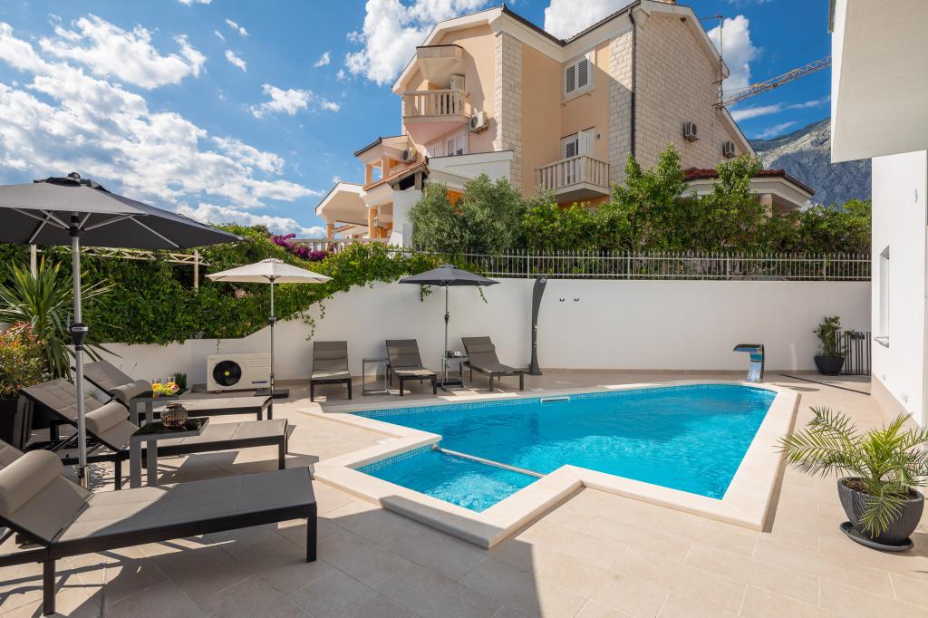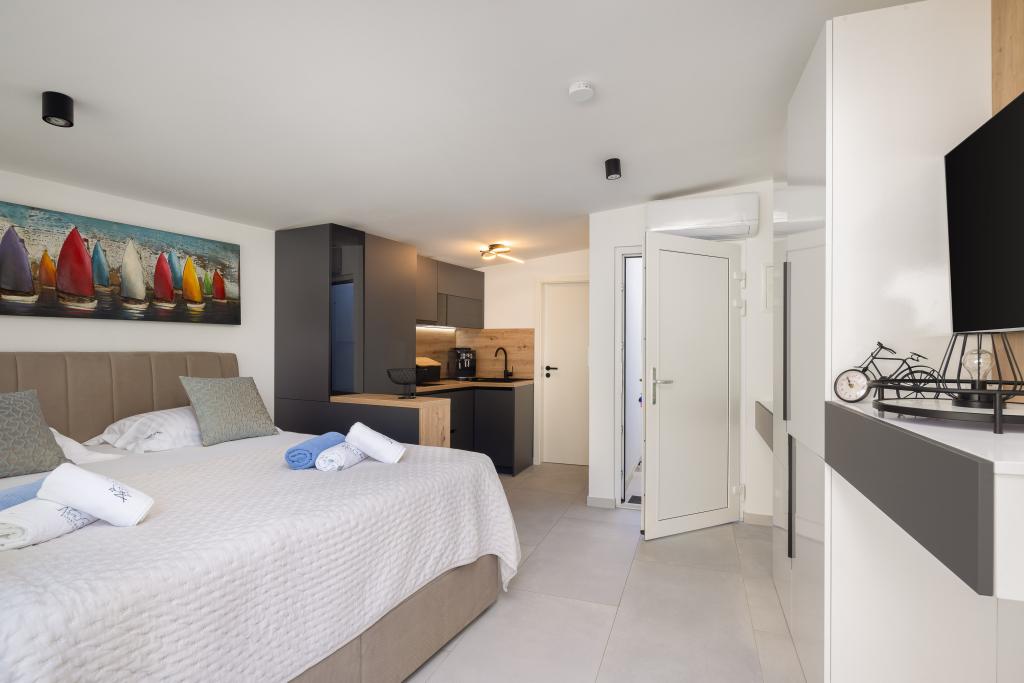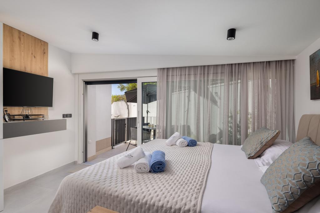 Představujeme vám apartmány A&D Deluxe s bazénem, komfortní ubytovací jednotky umístěné v docházkové vzdálenosti od moře, pouhých 300 metrů. Každý apartmán nabízí dokonalou kombinaci komfortu a luxusu. Apartmán A1 se 2 ložnicemi, 2 koupelnami a prostornou terasou nabízí částečný výhled na moře a je ideálním místem k odpočinku pro rodiny nebo malé skupiny. Hosté mají navíc přímý přístup do bazénu, který jim umožňuje vychutnat si občerstvení a další zábavu. Apartmá A2, také se 2 ložnicemi a 2 koupelnami, má také přístup k bazénu, což hostům umožňuje užít si další zábavu a relaxaci. Apartmán A3 s jednou ložnicí a koupelnou má také přístup k bazénu a je ideální pro páry nebo menší rodiny, které hledají odpočinkovou dovolenou u moře. Všechny apartmány jsou plně vybaveny, včetně kuchyní, soukromého parkoviště, klimatizací a chytrých televizorů, což zajišťuje komfort a pohodlí během vašeho pobytu. Užijte si luxus soukromého bazénu a blízkost krásných pláží v těchto apartmánech.