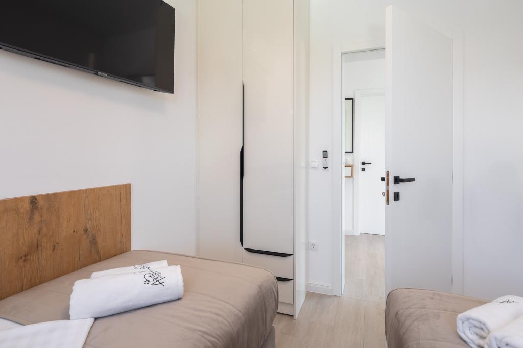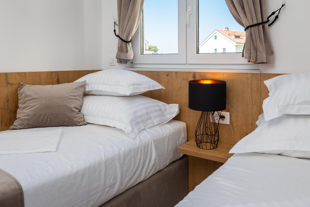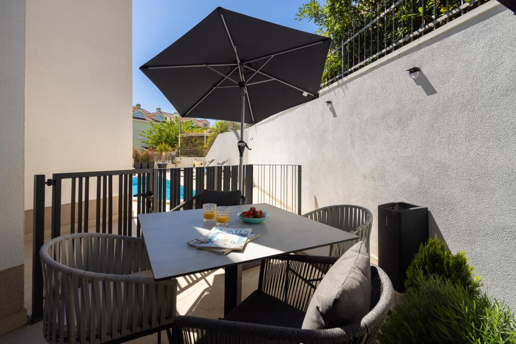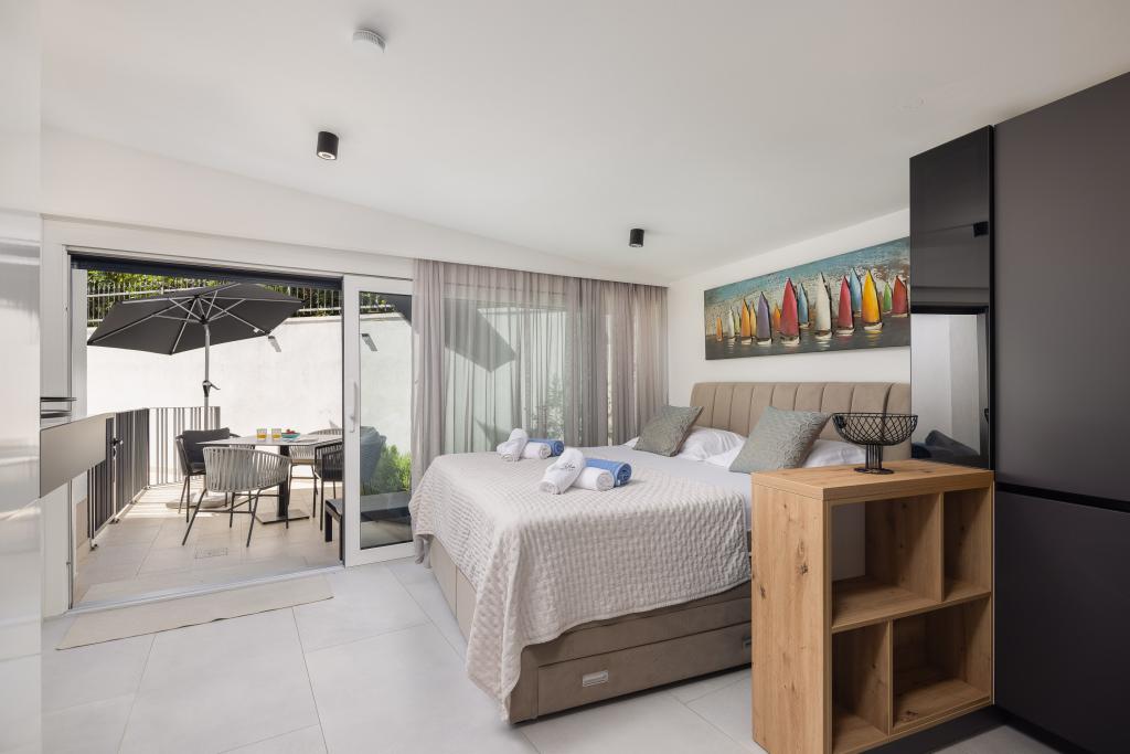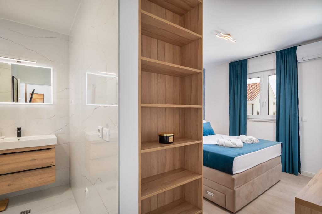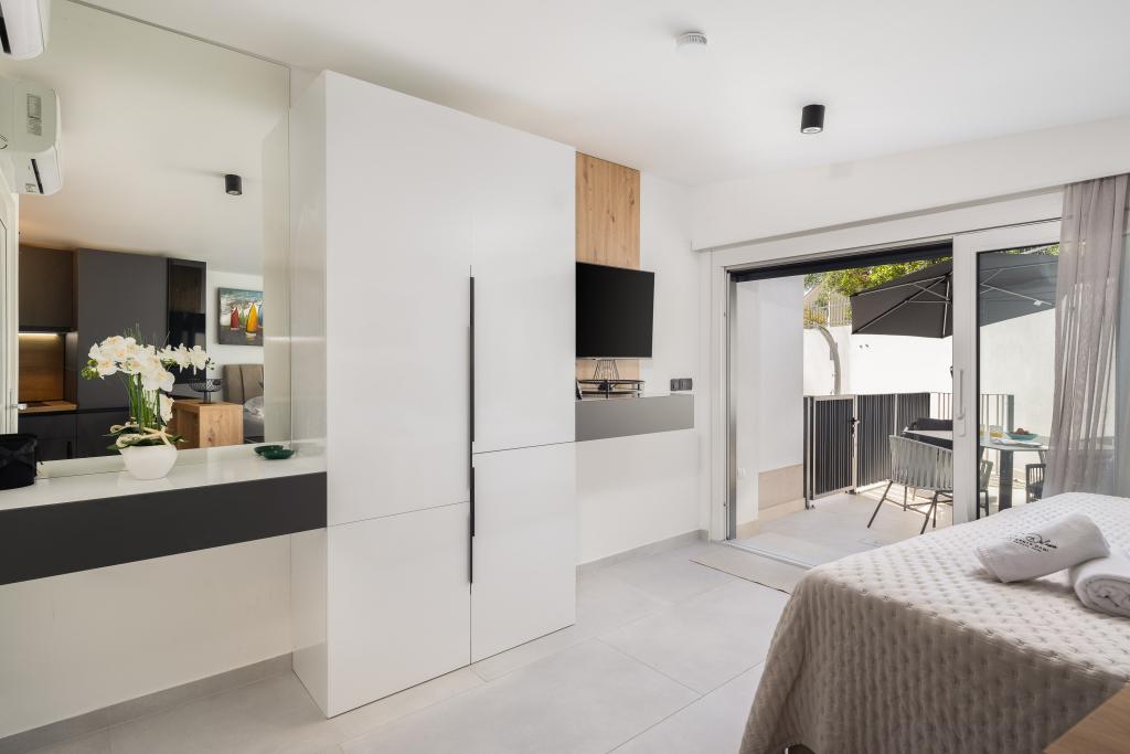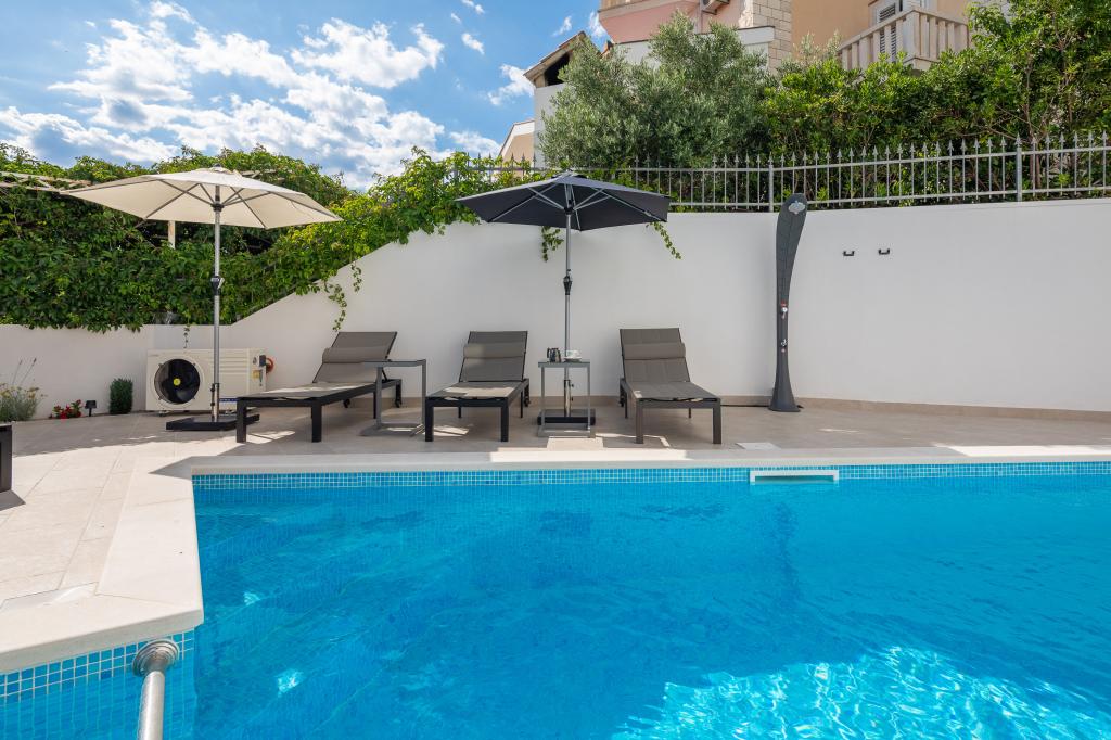 Představujeme vám apartmány A&D Deluxe s bazénem, komfortní ubytovací jednotky umístěné v docházkové vzdálenosti od moře, pouhých 300 metrů. Každý apartmán nabízí dokonalou kombinaci komfortu a luxusu. Apartmán A1 se 2 ložnicemi, 2 koupelnami a prostornou terasou nabízí částečný výhled na moře a je ideálním místem k odpočinku pro rodiny nebo malé skupiny. Hosté mají navíc přímý přístup do bazénu, který jim umožňuje vychutnat si občerstvení a další zábavu. Apartmá A2, také se 2 ložnicemi a 2 koupelnami, má také přístup k bazénu, což hostům umožňuje užít si další zábavu a relaxaci. Apartmán A3 s jednou ložnicí a koupelnou má také přístup k bazénu a je ideální pro páry nebo menší rodiny, které hledají odpočinkovou dovolenou u moře. Všechny apartmány jsou plně vybaveny, včetně kuchyní, soukromého parkoviště, klimatizací a chytrých televizorů, což zajišťuje komfort a pohodlí během vašeho pobytu. Užijte si luxus soukromého bazénu a blízkost krásných pláží v těchto apartmánech.
