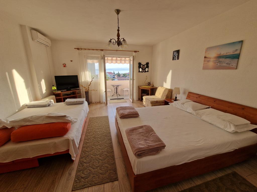 Pěkný a slušně zařízený byt v rodinném domě v klidné části obce Promajna, která se nachází mezi Makarskou a Baška Voda. Nemovitost se nachází přibližně 200 m od centra, na pláž a moře. Byt je vybaven dvěma koupelnami, velkou kuchyní a kuchyňským koutem, dvě ložnice a velký obývací pokoj Byt je prostorný a velký a může fungovat jako dva samostatné byty -. Nejvhodnější pro rodinu s přáteli Byt má dva vchody a dvě terasy v rámci přirozeného odstínu. . ve které si hosté mohou pohodlně odpočinout od horkých letních dnů a slunce.