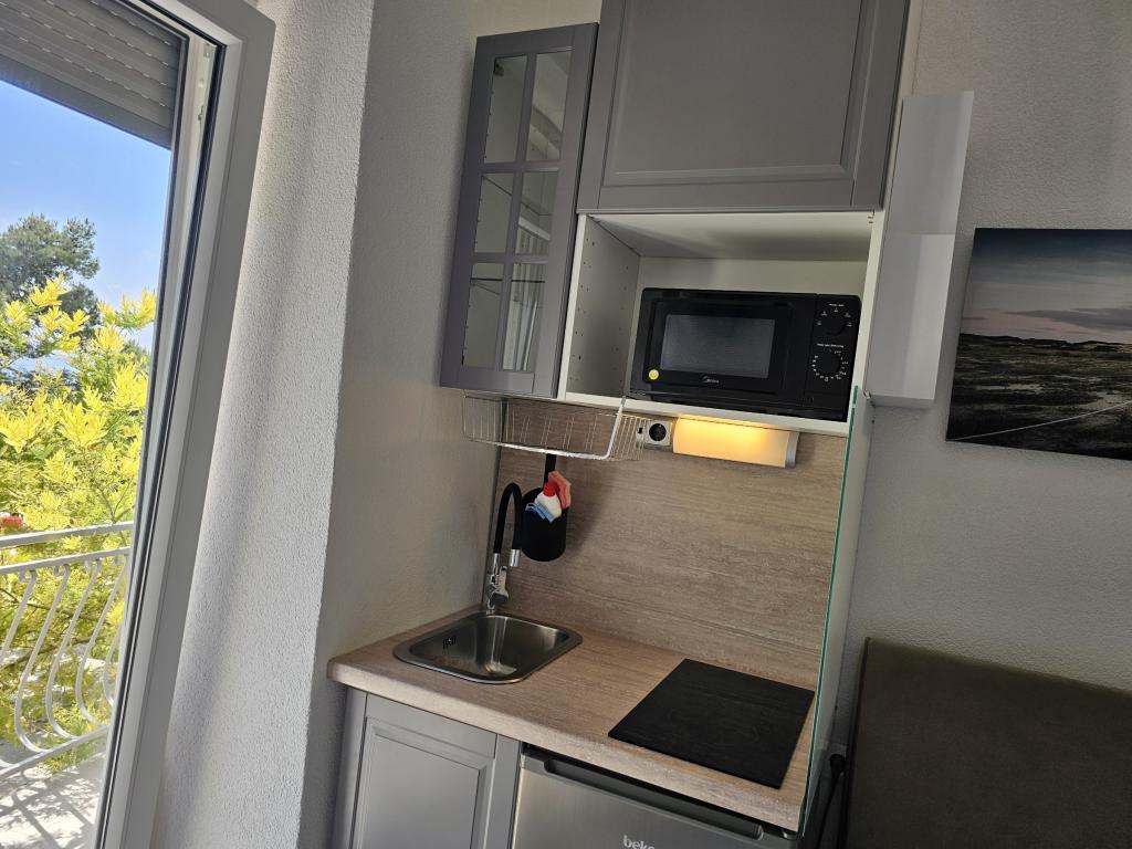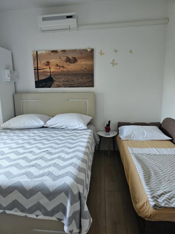 Studio pro 2 osoby, studio pro 3 osoby, pokoj, apartmán, první řada u moře, centrum města, hlídané parkoviště pro každou ubytovací jednotku (100 metrů od budovy)