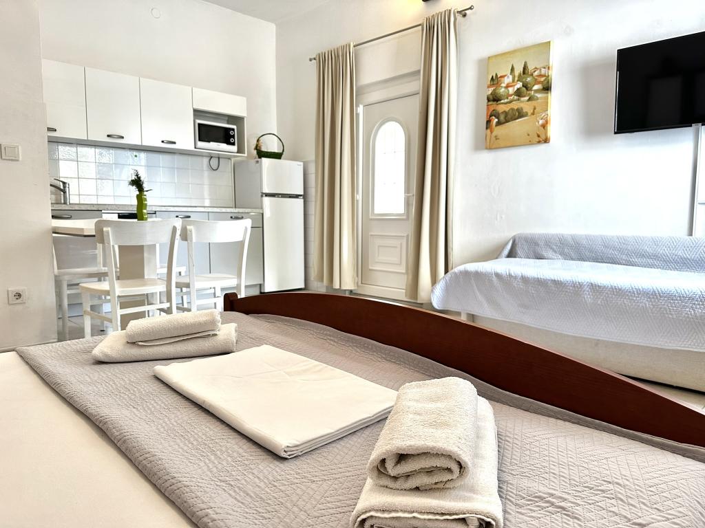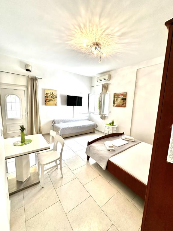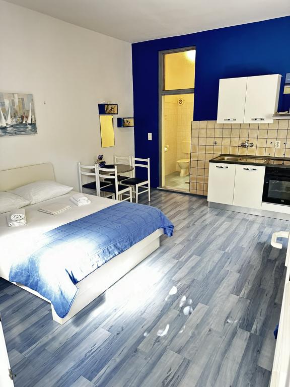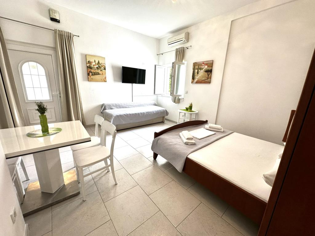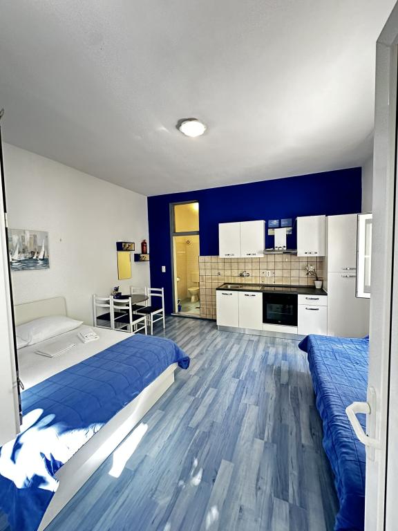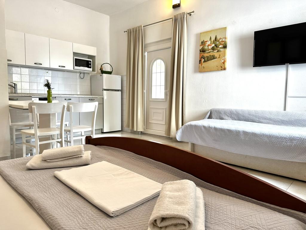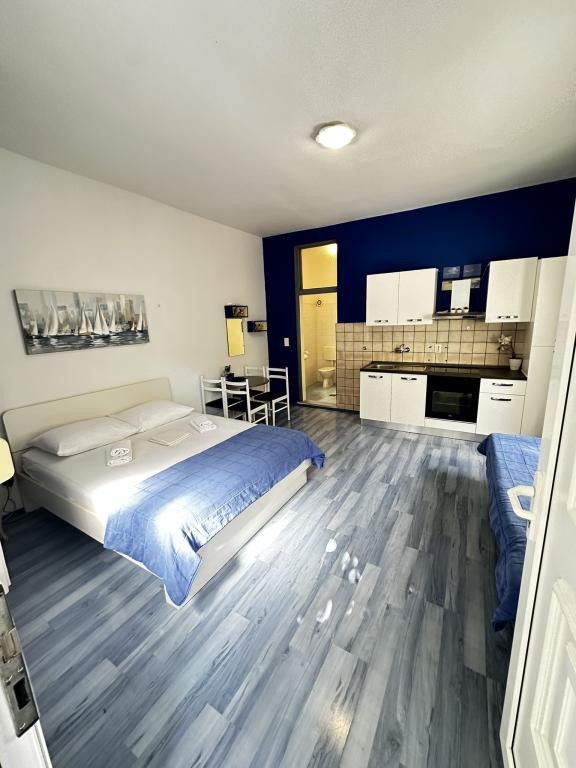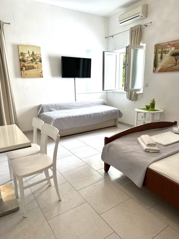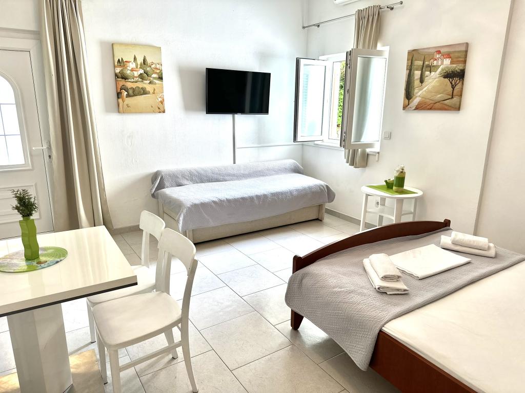 V nabídce jsou dva krásné dvoupokojové apartmány, plně vybavená a dvě klimatizovaná studia. Dvoupokojové apartmány mají dva pokoje s manželskou postelí. Jeden z apartmánů má možnost ubytovat další dvě osoby na gauči. Dvě studia mají každé dvojlůžko a rozkládací pohovku a jsou vhodná pro rodinu maximálně 4 osob, z toho 2 děti. Všechny koupelny ve dvoupokojových apartmánech jsou vybaveny sprchovým koutem a také pračkou a vysoušečem vlasů. Kuchyně jsou plně vybavené. Obsahují troubu, mikrovlnnou troubu, lednici, myčku a rychlovarnou konvici. Samozřejmě jsme se postarali i o veškeré kuchyňské náčiní, které potřebujete. Studio má koupelnu se sprchovým koutem, vybavenou kuchyň s mikrovlnnou troubou, sporákem a lednicí. Nachází se 300 metrů od moře v Promajně a mají bezplatné Wi-Fi a klimatizaci. V budově je k dispozici bezplatné soukromé parkoviště.