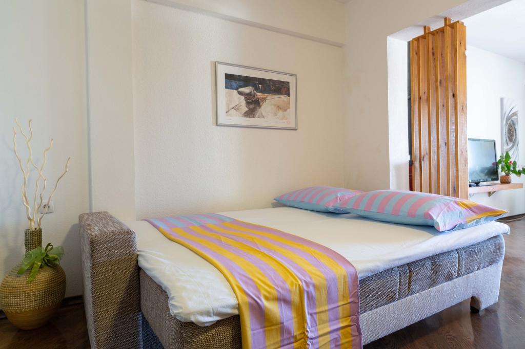 Moderně zařízený jednopokojový byt v činžovním domě s celkem 4 byty, 1. patro. Pouze 150 m od hlavní pláže. K dispozici je také gril před budovou a hlídané parkoviště. HOJALERO APARTMENTS Všechny apartmány se nacházejí v apartmánovém domě na adrese Put Radojkovica 14, jen 50m od moře.