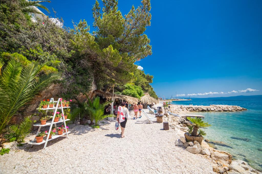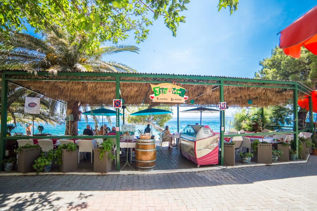 Welcome drink v ceně, úschovna kol, možnost pomoci s organizací výletů - skywalk Biokovo a výlety lodí piknik na Brač, Hvar, Korčulu.