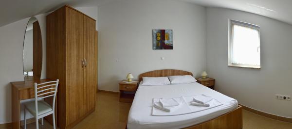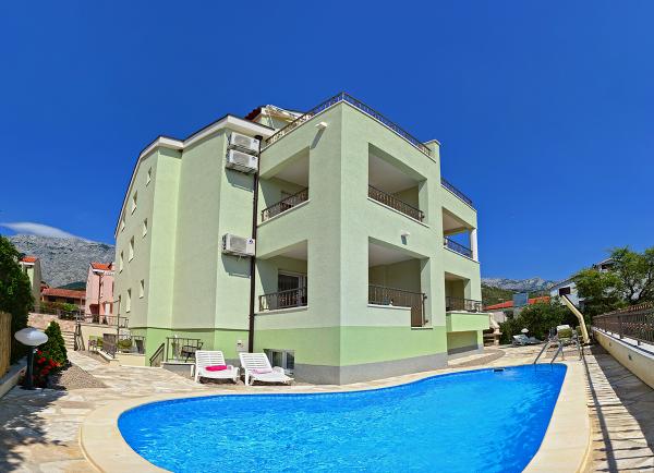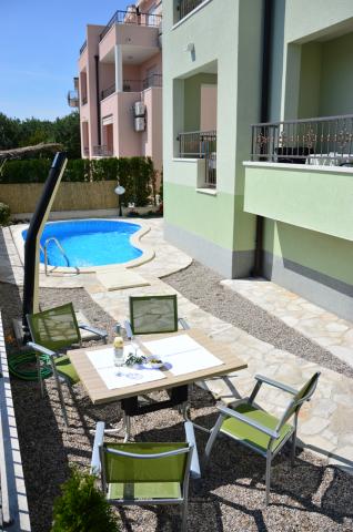 Byli jsme ubytovaní v apartmánu 2+2 v suterénu. Vše bylo krásně čisté, nové, plně vybavené. Vyšli jsme po schodech a mohli skočit rovnou do bazénu. Bazén byl krásný, čistý. Paní domácí moc milá. Moře blízko, 3minuty chůze od domu. Vše na 1*. Moc rádi se sem vrátíme!