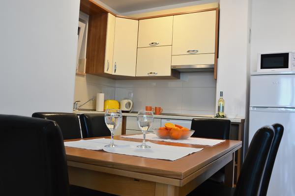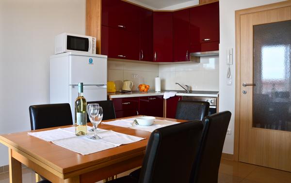 Všechny apartmány jsou nové a luxusně vybavené. Vedle domu je bazén. Apartmány se nachází 60 metrů od pláže.