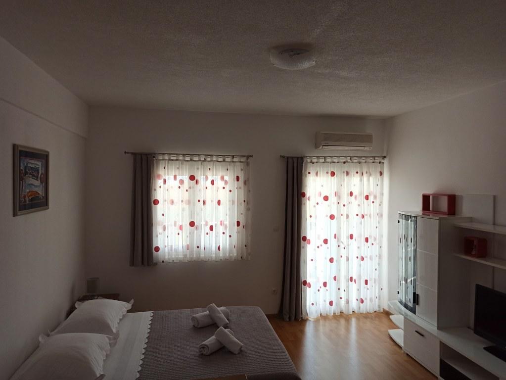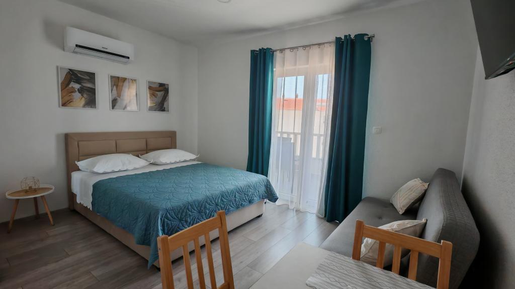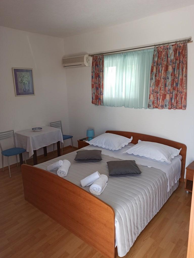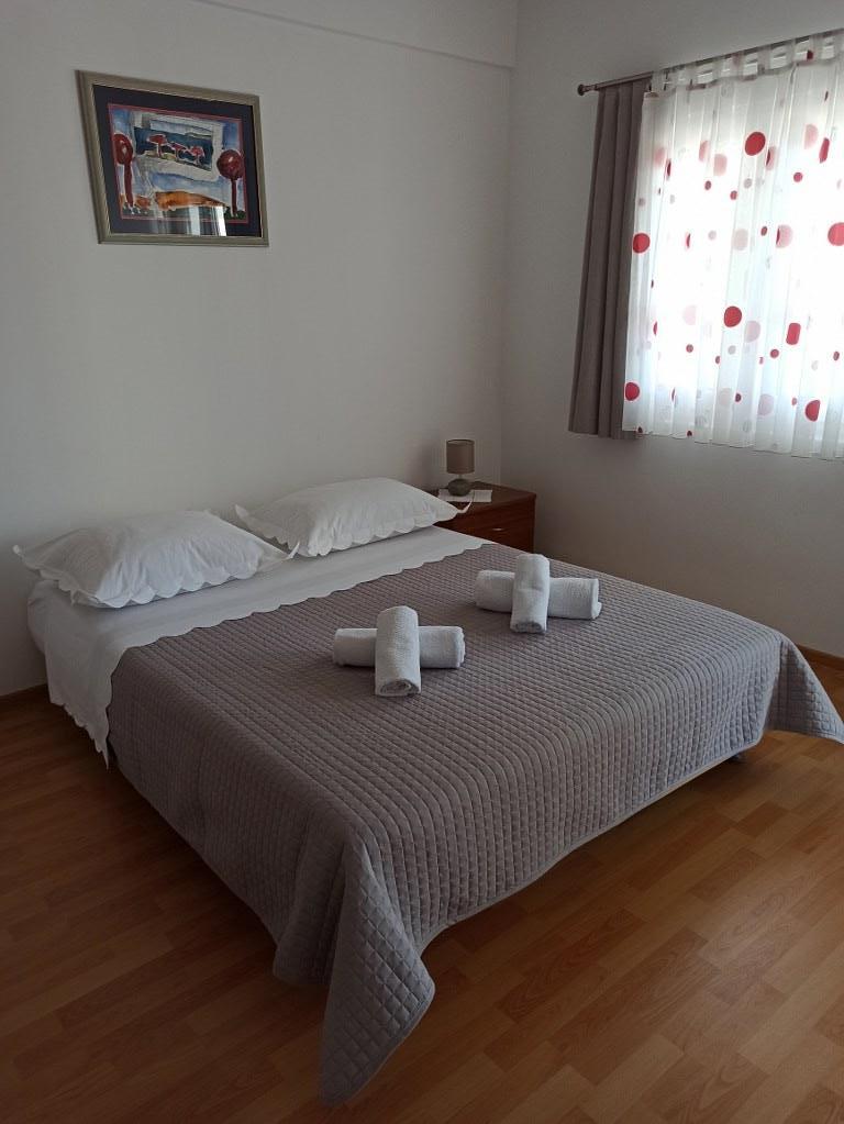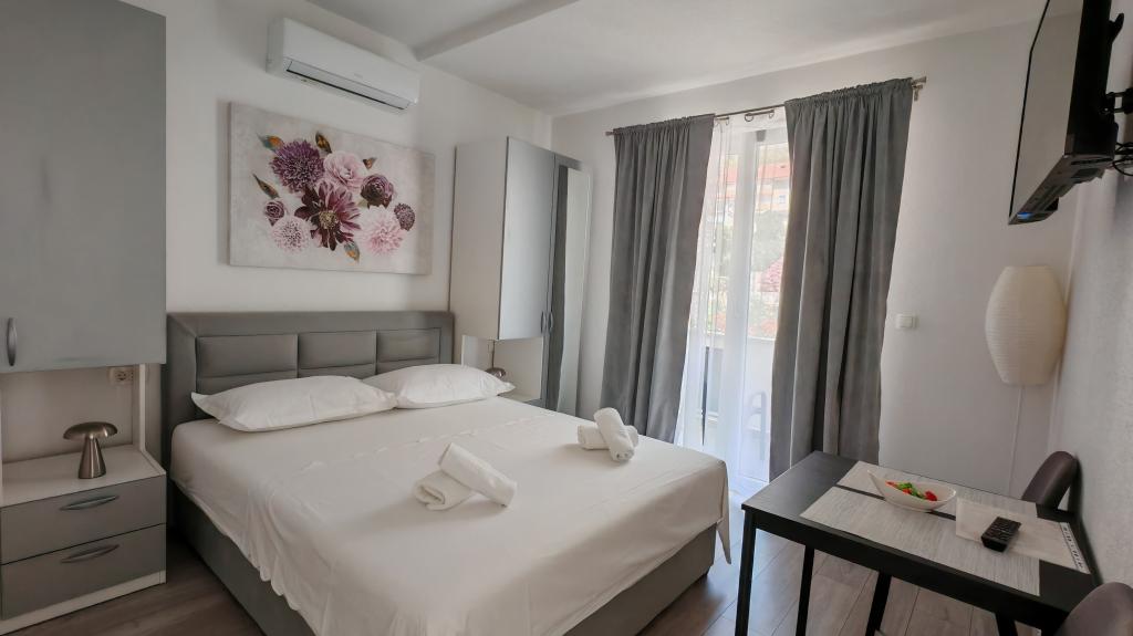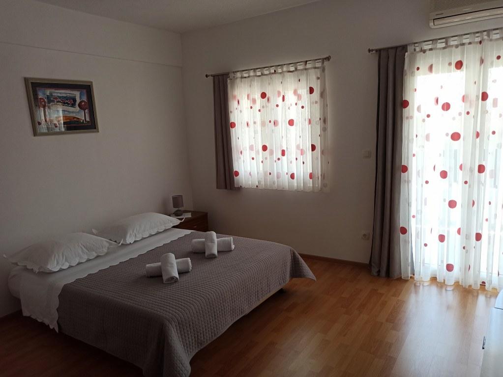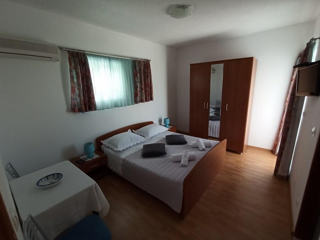 Bydleli jsme ve dvoulůžkovém pokoji s koupelnou, plně vybavenou kuchyní a balkonem s bočním výhledem jak na moře, tak na hory. Pokoj byl velmi čistý a uklizený, bez výhrad. Majitel byl k dispozici na místě, velmi komunikativní a ochotný nejen v otázkách ubytování, ale také poradil, kde se dobře a levně najíst, kde koupit nejlepší domácí olivový olej atd. Příští rok se tentokrát určitě s přáteli navštívíme.