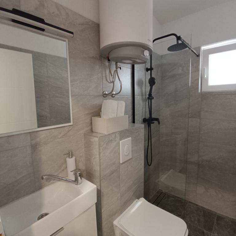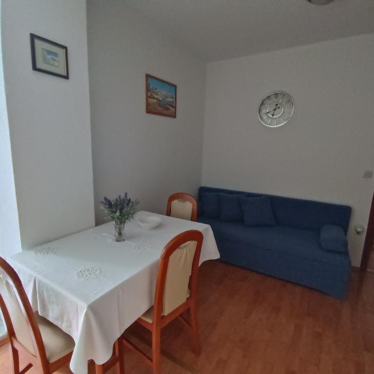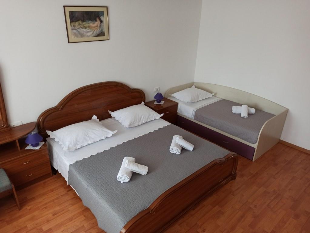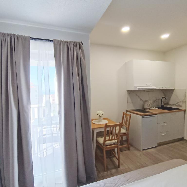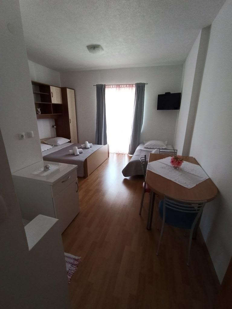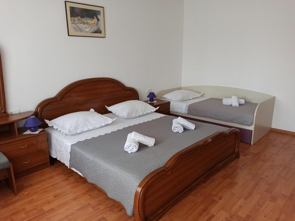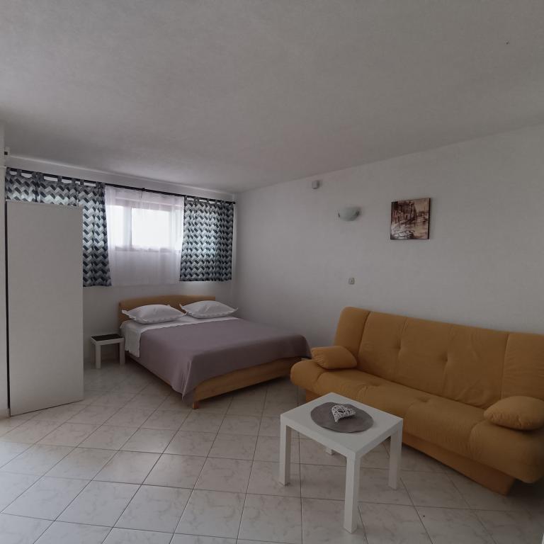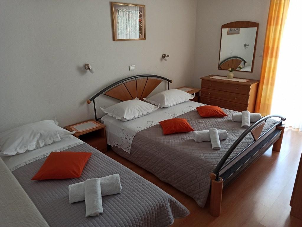 Bydleli jsme ve dvoulůžkovém pokoji s koupelnou, plně vybavenou kuchyní a balkonem s bočním výhledem jak na moře, tak na hory. Pokoj byl velmi čistý a uklizený, bez výhrad. Majitel byl k dispozici na místě, velmi komunikativní a ochotný nejen v otázkách ubytování, ale také poradil, kde se dobře a levně najíst, kde koupit nejlepší domácí olivový olej atd. Příští rok se tentokrát určitě s přáteli navštívíme.