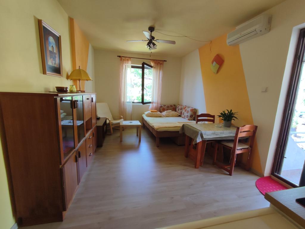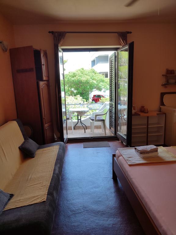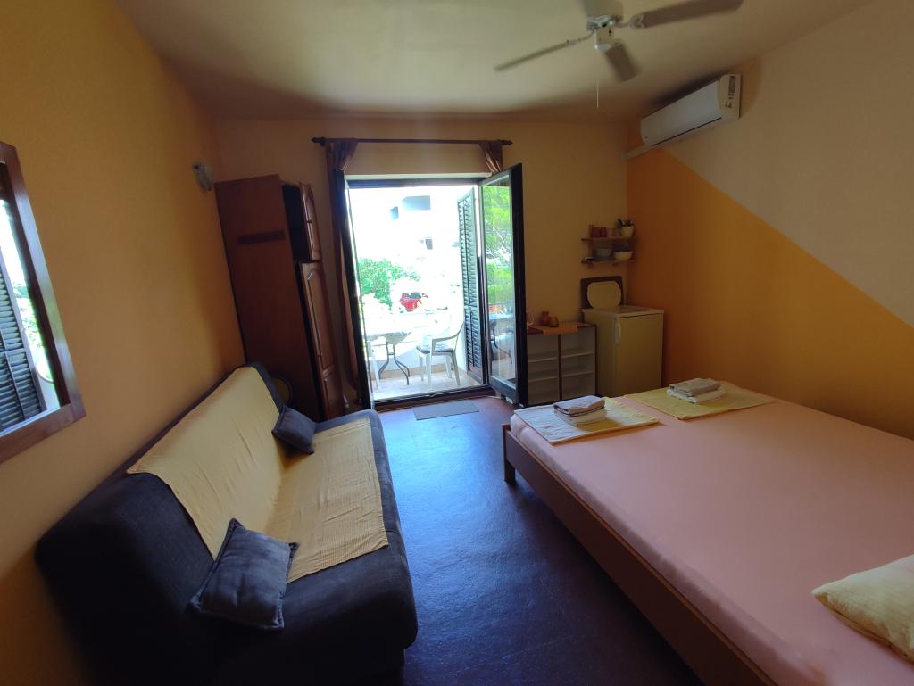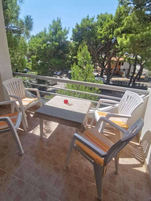 Rekreační ubytování v prvním patře domu obklopeného velkým dvorem s borovicemi. Parkování je ve dvoře, centrum a pláž s kavárnami cca 350m a první restaurace a obchod 150m. V nabídce jsou 3 ubytovací jednotky: ložnice pro dva, ložnice pro dva s balkonem a dvoupokojový apartmán pro dva s přistýlkou pro třetího dospělého nebo dvě děti. Každá ložnice má vlastní koupelnu. Oba pokoje bytu mají balkon s výhledem do vnitrobloku. Je možné pronajmout celé patro (1. patro) pro 6 dospělých a 1-2 děti. Pro všechny další informace je majitel k dispozici od 08:00 do 20:00 (Saša mobil: +385 98 493 101).