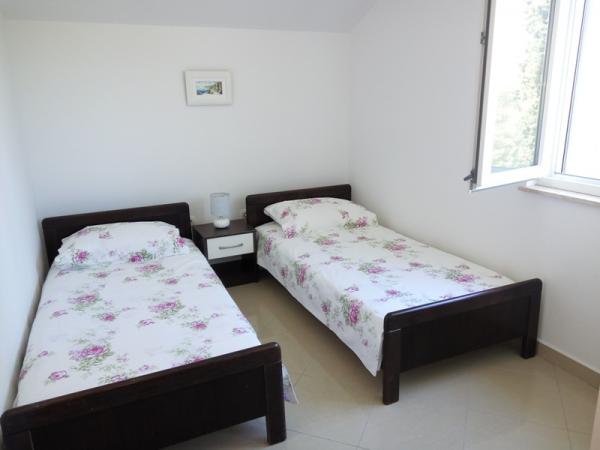 Apartmán Štimac nabízí komfortní ubytování pro 4 osoby (bez domácích mazlíčků) v nově zrekonstruovaném apartmánu s výhledem na moře, pouhých 5 metrů od moře na malém ostrově Prvić, ve městě Prvić Šepurine. Apartmán Štimac se nachází v prvním patře novostavby rodinného domu obklopeného zelení a středomořskými rostlinami. Ubytovací kapacita apartmánu je 4 lůžka a skládá se z chodby, dvou ložnic (jedna z nich má malý balkon s výhledem na moře), koupelny, plně vybavené kuchyně s jídelnou a obývacím pokojem a velká terasa. Apartmán je klimatizovaný a všechny pokoje mají výhled na moře. Hosté mohou využívat gril a venkovní sprchu. Restaurace a obchody se nacházejí cca 300m od apartmánu. Na ostrově nejsou žádná auta, což z něj dělá ideální destinaci pro klidnou rodinnou dovolenou. Auto lze zanechat u Srima (místo na pozemku 800 m od apartmánu). Parkoviště je hlídané a nachází se ve dvoře rodinného domu a stojí 6 eur na den.