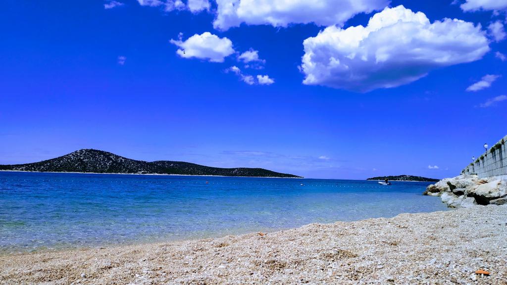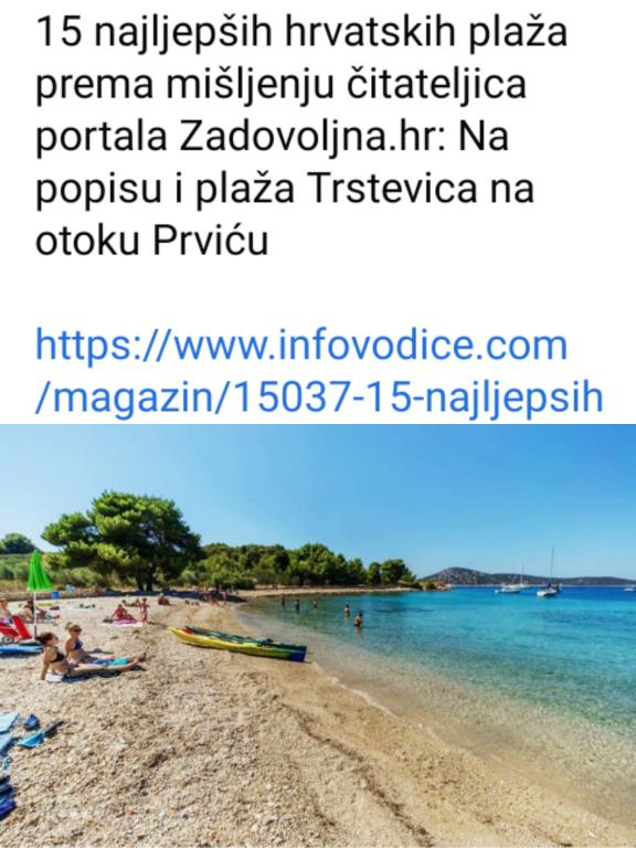 Apartmán s výhledem na moře, první řada k moři a na pláž! Nachází se v přízemí zrekonstruovaného kamenného domu a má vlastní terasu s pergolou, malou květinovou zahradu a gril. Naproti je pláž a hlavní nábřeží, kde kotví trajekt do Vodice a Šibeniku a přístaviště taxi. Vodice jsou vzdálené pouhých 10 minut jízdy. Přes silnici je park s dětským hřištěm, obchodem a pekárnou. V centru města, které je vzdálené cca 200 m, je tržnice, obchod, rybí trh, pošta, kavárny a restaurace. Na ostrově nejezdí žádná auta, takže pokud chcete uniknout z ruchu velkoměsta, je to ideální místo pro úplnou relaxaci! Okouzlí vás staré kamenné domy, úzké uličky, procházky podél křišťálově čistého moře a nádherné západy slunce!