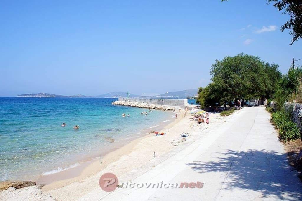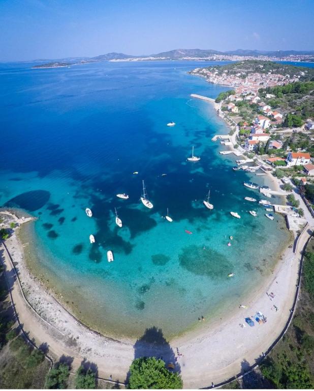 Apartmán, respektive první patro domu, má jednu ložnici s manželskou postelí, další pokoj se 2 samostatnými lůžky a pohovku v obývacím pokoji. K vybavení patří klimatizace, satelitní TV, myčka nádobí, pračka, DVD, neomezený Wi-Fi internet, kuchyň se sporákem, malou lednicí a větší s mrazákem, kávovar, mikrovlnná trouba, rychlovarná konvice... Terasa o rozloze přibližně 4 metrů čtverečních má stůl a 4 židle. Pokud jste již v Šepurině byli, nacházíme se v blízkosti velkého kostela, 100 metrů od moře. Apartmán je 5 minut od centra, takže jste dostatečně daleko, abyste neslyšeli hluk z kaváren a davů. Pokud přijedete autem, můžete zaparkovat v Srimě, kde je parkování zpoplatněno 5 eur na den. Pokud přijedete do Vodic nebo Srimy, musíte si zavolat taxi a my vám poskytneme kontaktní informace. Pokud přijedete do Šibeniku, pravidelná lodní linka trvá 1 hodinu do Šepuriny a jízdu umocňuje plavba lodí krásným kanálem sv. Antonína a ostrovy, které zdobí Šibenické souostroví. Cesta autem z Vodic trvá 15 minut a do Srimy 5 minut.