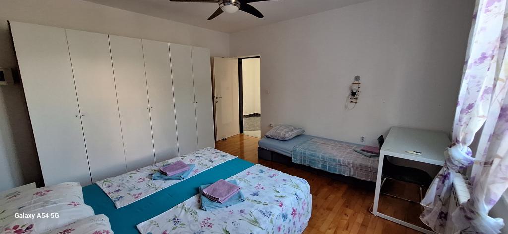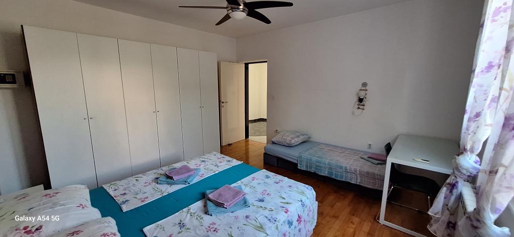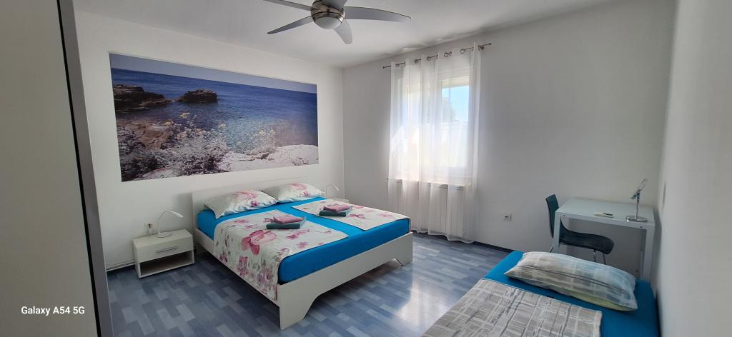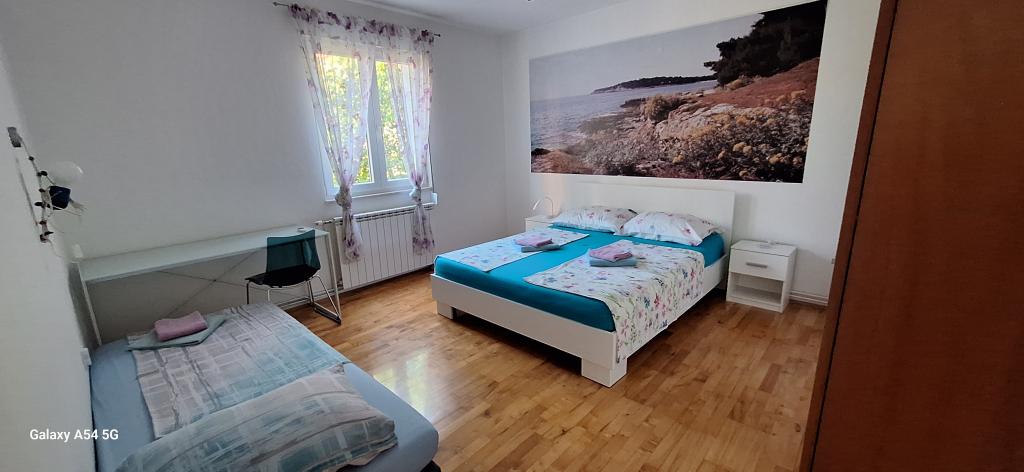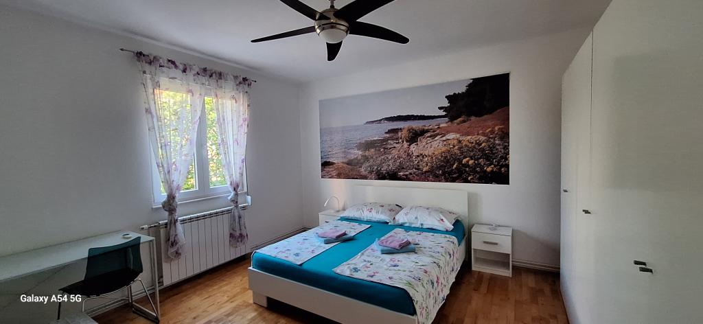 Objevte skutečný luxus v našem Art Apartment v Pule, který se nachází v krásné Istrii. Tento prostorný apartmán může ubytovat až 6 hostů na 100 metrech čtverečních obytné plochy. Skládá se ze 2 ložnic a 2 koupelen, dokonale navržených pro vaše pohodlí a relaxaci. Přízemí domu o rozloze 100 m2 + 29 m2 balkon + 600 m2 zahrada s trampolínou. Hosté mají přístup do kuchyně, jídelny, obývacího pokoje, chodby, 2 ložnic s manželskou postelí + přistýlkou v každém pokoji. Velká koupelna s vanou. Malá koupelna se sprchovým koutem. Velká terasa o rozloze 20 m2. Výhled směrem k lesu.