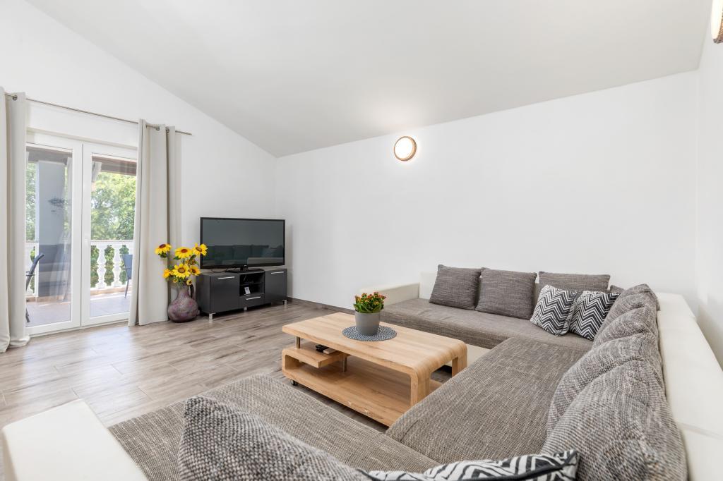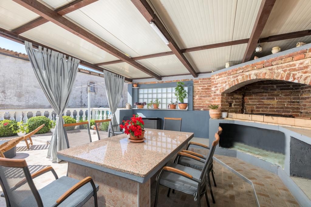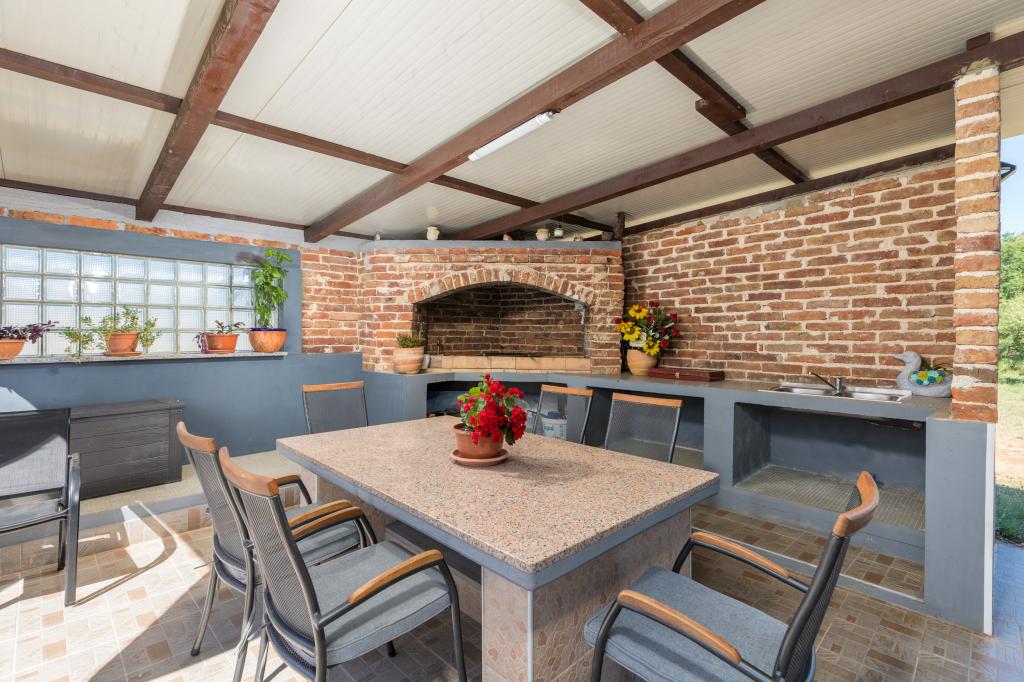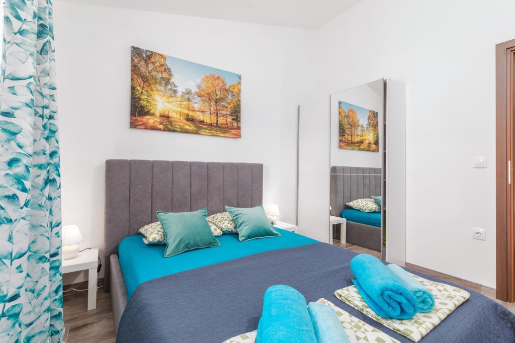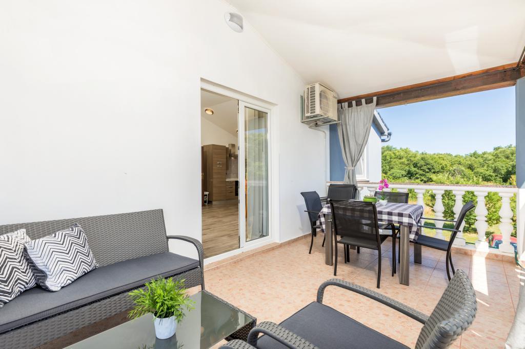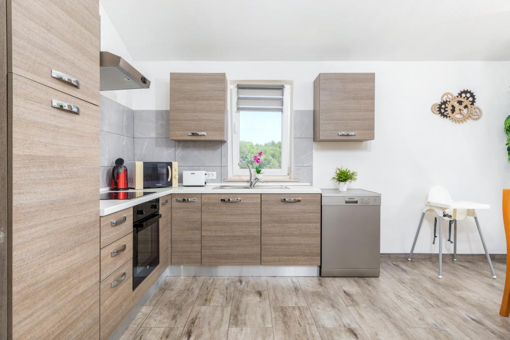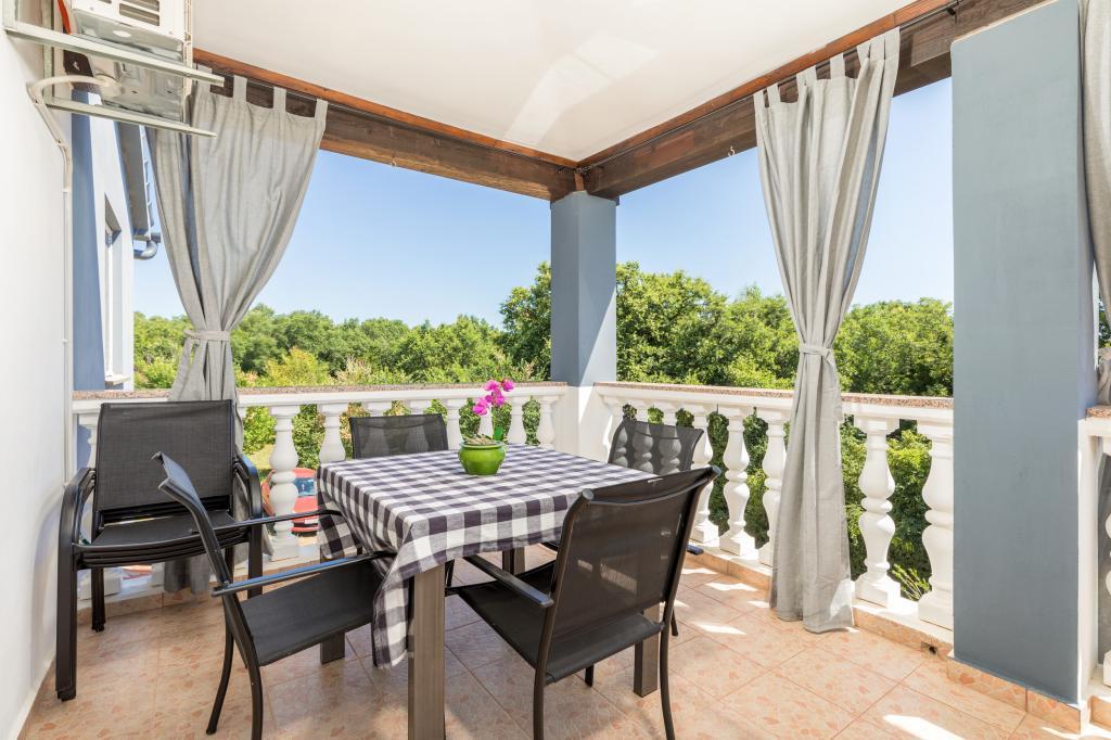 Odpočiňte si v nově vybudovaném zařízení jen 8 km od centra Puly a 10 km od první pláže. Klidné prostředí na kraji lesa, probouzející se za cvrlikání ptáků. Byt v prvním patře má 3 ložnice, koupelnu vybavenou pračkou a sprchovým koutem, kuchyň s pračkou, jídelnu a obývací pokoj. Krytá terasa s jídelním stolem a obývacím nábytkem a v přízemí gril s inventářem a velkou zahradou. Wi-Fi, dětská postýlka, krmítko, parkování zdarma. V blízkosti hřiště a supermarket.