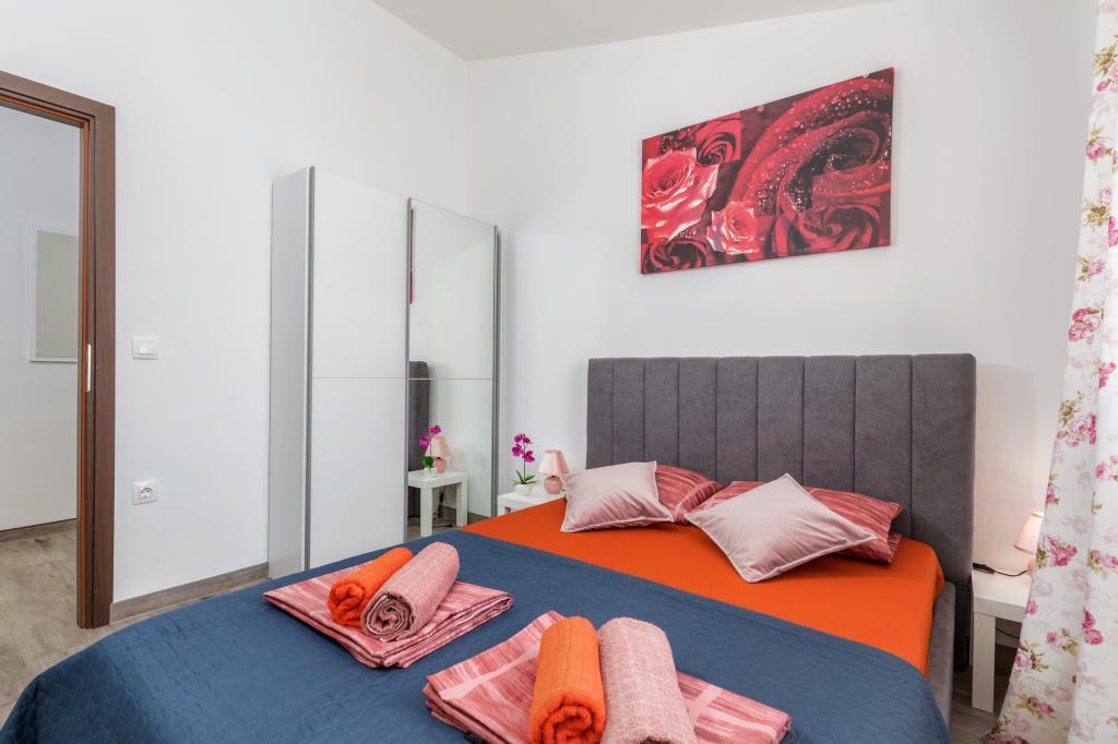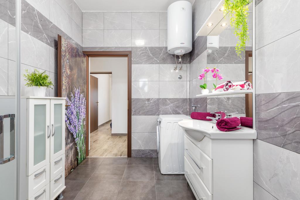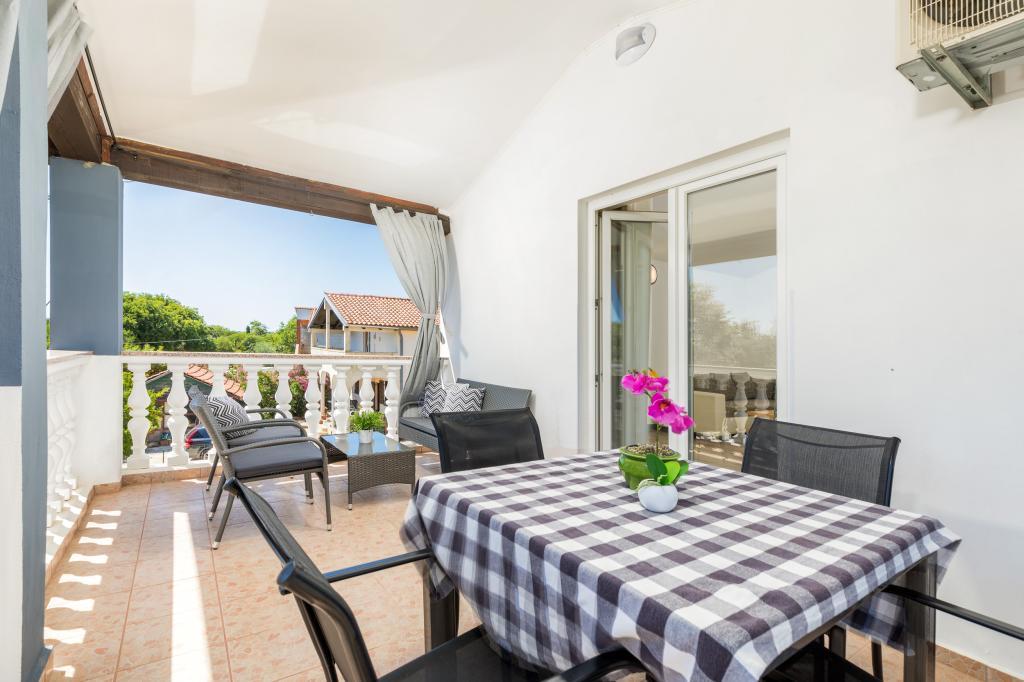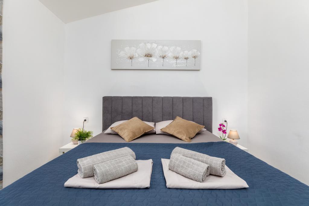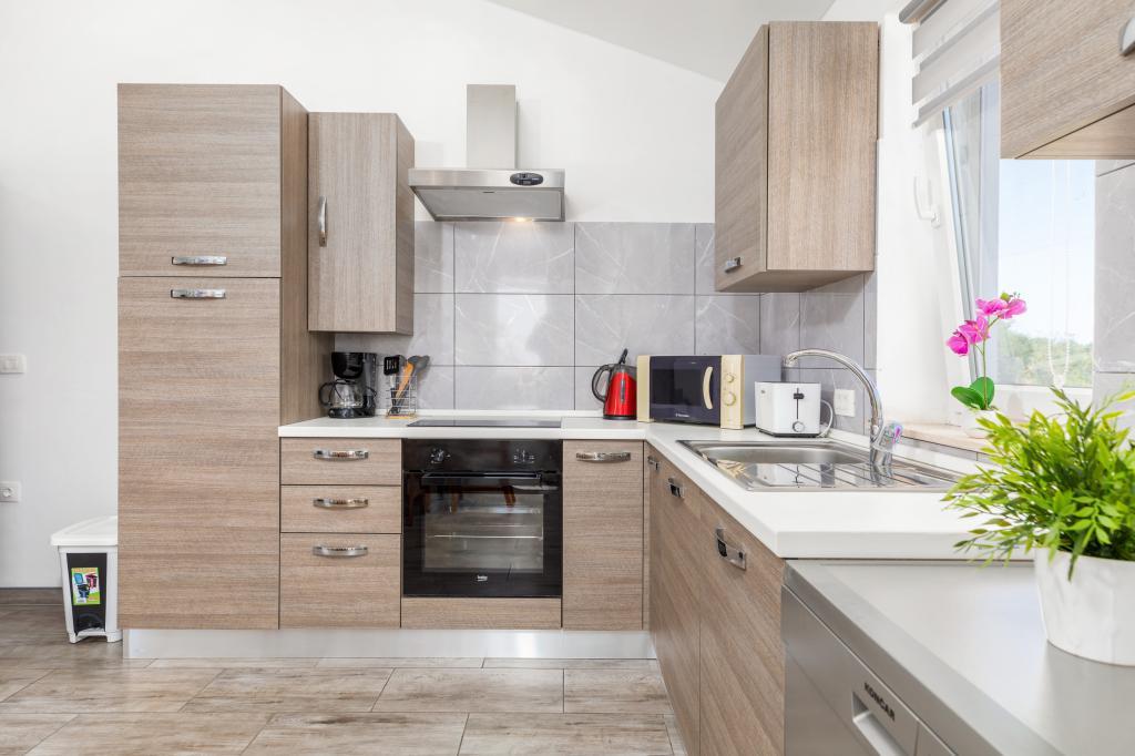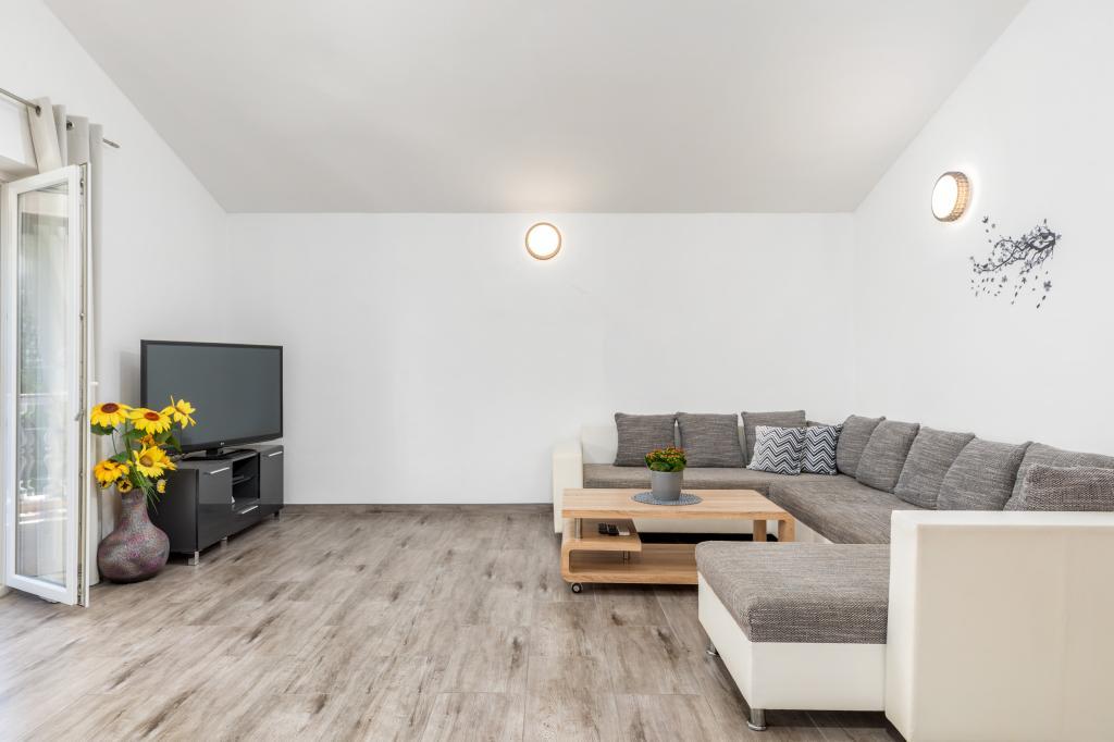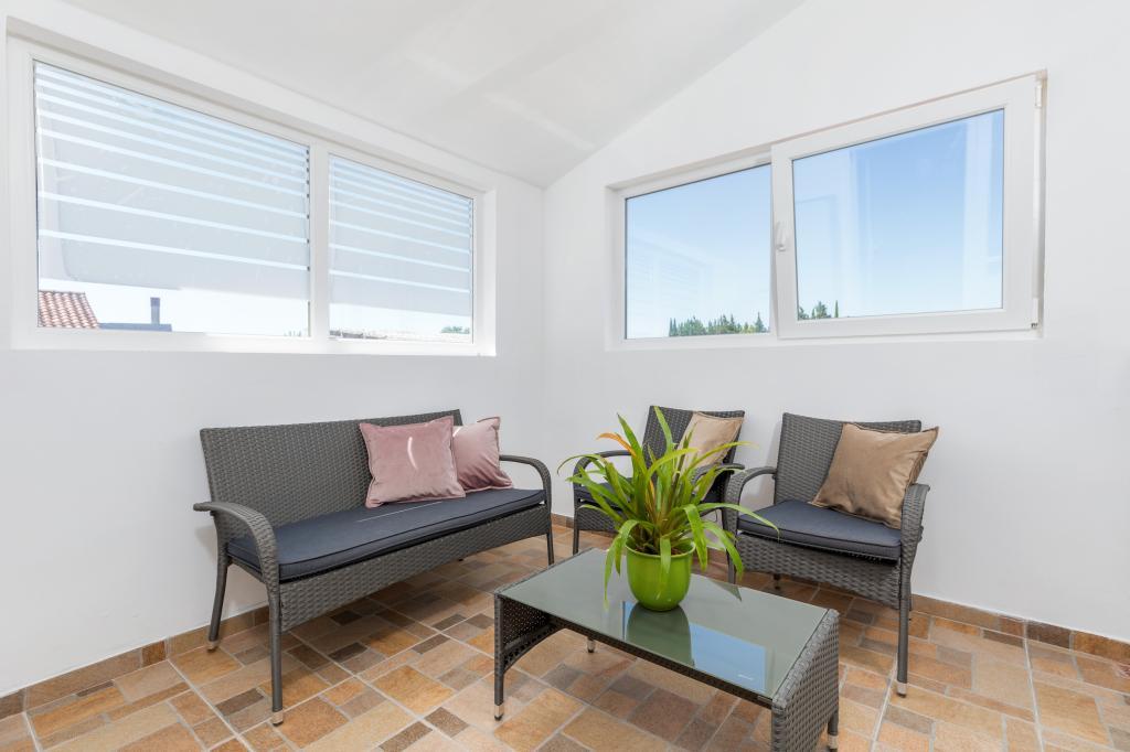 Odpočiňte si v nově vybudovaném zařízení jen 8 km od centra Puly a 10 km od první pláže. Klidné prostředí na kraji lesa, probouzející se za cvrlikání ptáků. Byt v prvním patře má 3 ložnice, koupelnu vybavenou pračkou a sprchovým koutem, kuchyň s pračkou, jídelnu a obývací pokoj. Krytá terasa s jídelním stolem a obývacím nábytkem a v přízemí gril s inventářem a velkou zahradou. Wi-Fi, dětská postýlka, krmítko, parkování zdarma. V blízkosti hřiště a supermarket.