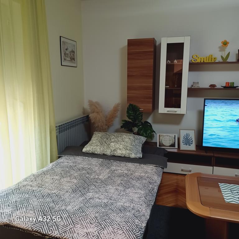 Plně a moderně vybavený byt v klidné, zelené části města Pula, v blízkosti veškerá občanská vybavenost: obchody Plodina a Lidl, lékárny, kavárny, restaurace, zelený trh, 15 minut chůze do centra. Autobusová zastávka 400 m. Parkování přímo u domu, zaručeno. Vzdálenost na pláž Saccorgiana je méně než 10 minut autem nebo 20 minut na kole. Ubytování dále nabízí velkou terasu s grilem, lehátky a zahradním nábytkem. Vybavení ubytování: kuchyň se všemi potřebnými věcmi, mikrovlnná trouba, sporák, toustovač, kávovar, pračka, myčka, sušička prádla, ložní prádlo, polštáře, přikrývky a vše, co dělá ubytování příjemným pobytem pro rodinu, pár nebo sólo cestovatele .