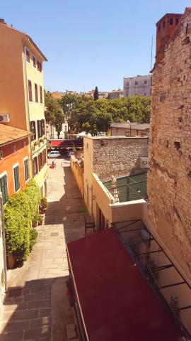 Byt se nachází v samém centru Puly, v blízkosti římského památek a aréně, mnoho malých restaurací, trhy, a tak dále. V blízkosti je autobusová YoZi mnoha plážích, stejně jako přístav, ze kterého lodě jdou na výlety na ostrovy Brijuni a Lim Channel. V bytě je dobře vybavené, s velkou kuchyní, pračkou a kuchyňským nádobím, klimatizace, vysokorychlostní bezdrátové připojení k internetu, satelitní televizi, se dvěma ložnicemi, koupelnou a balkonem.