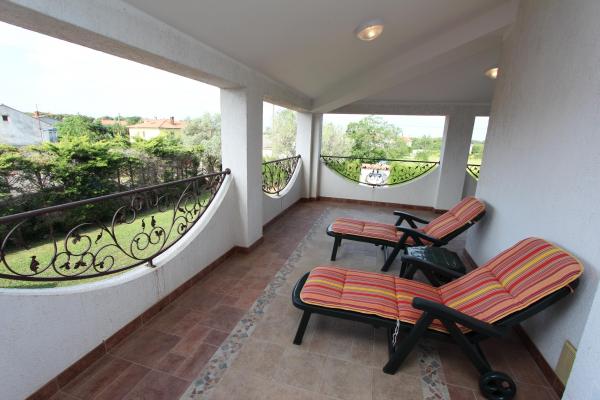 Plně vybavené a moderní byt. Poskytuje vše potřebné pro pohodlný pobyt a skutečný dovolenou. Byt se nachází v 1. patře cihlového domu. S velkou terasou, výhled na moře a ostrovy národní přírodní park Brijuni. V klidné předměstí Puly. 5 minut chůze k nejbližší obchod nebo supermarket 5 minut jízdy do nejbližší pláže nebo centra města. Bezplatné parkování a velké, zelené nádvoří vašeho bytu. Wi-Fi, a satelitní TV s 500TV programem. Koupelna je velký a pohodlný jacuzzi. Kuchyň je prostorná a vybavená všemi kuchyňské spotřebiče. Byt má 4 ložnice, obývací pokoj, WC, koupelna, jídelna, galerie, 2 terasy a koridorů. 2 ložnice, velká manželská postel, a 2 ložnice, dvě ložnice postel. Pro děti a rodiče, rodina max 8 osob. Máte možnost různých her, míče, nebo podobně, v pěkném zeleném dvoře. Villa Nera a my jako hostitelé, chceme vřelé přivítání a příjemnou dovolenou, hodně koupání v moři. Family Filimonovic.