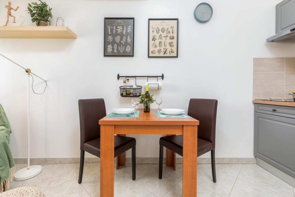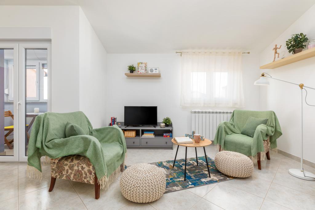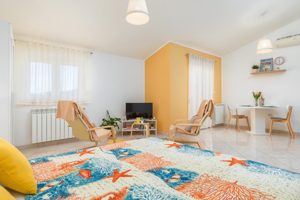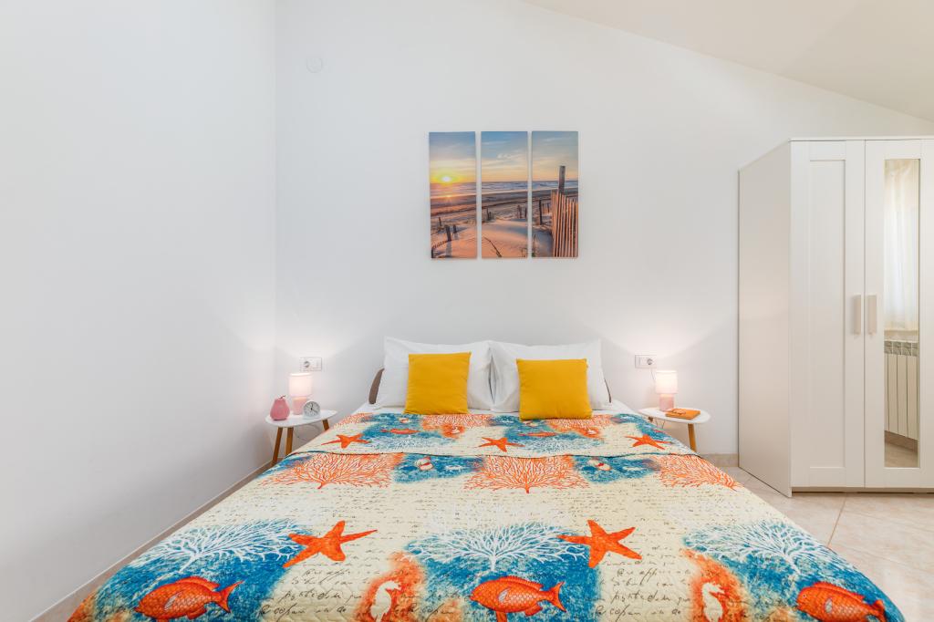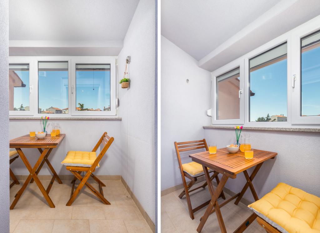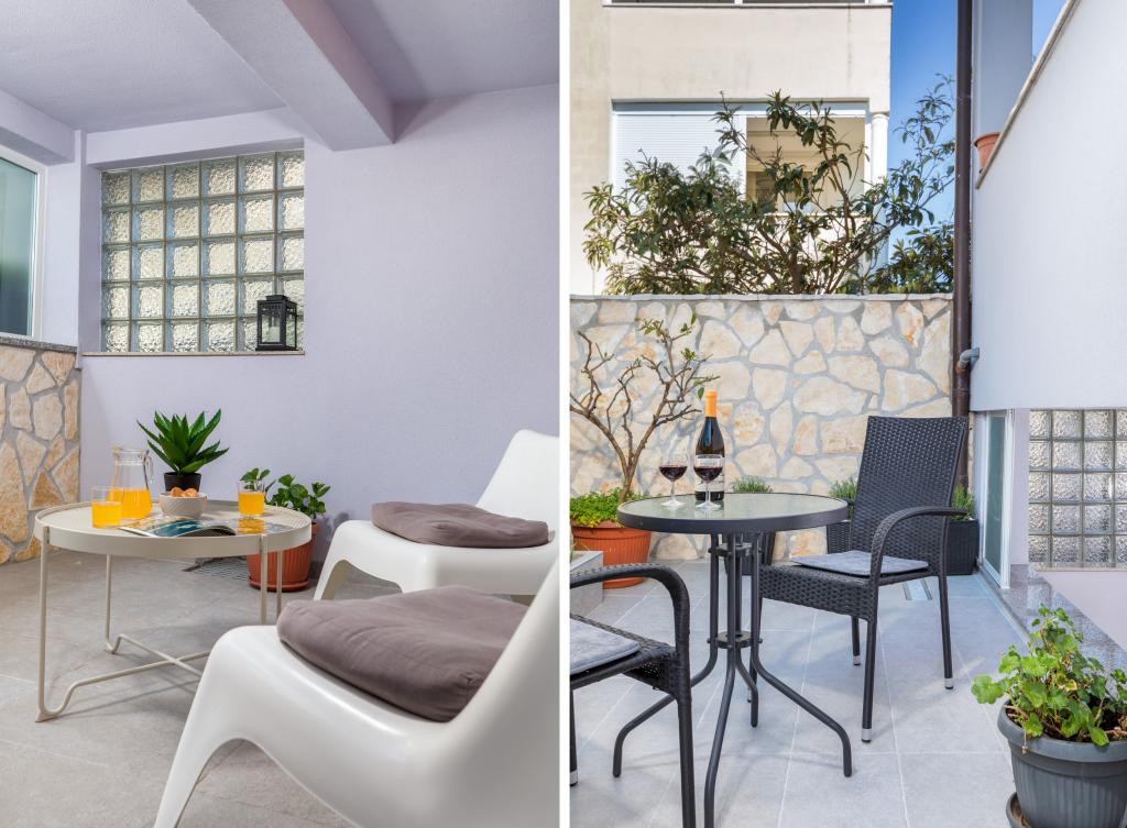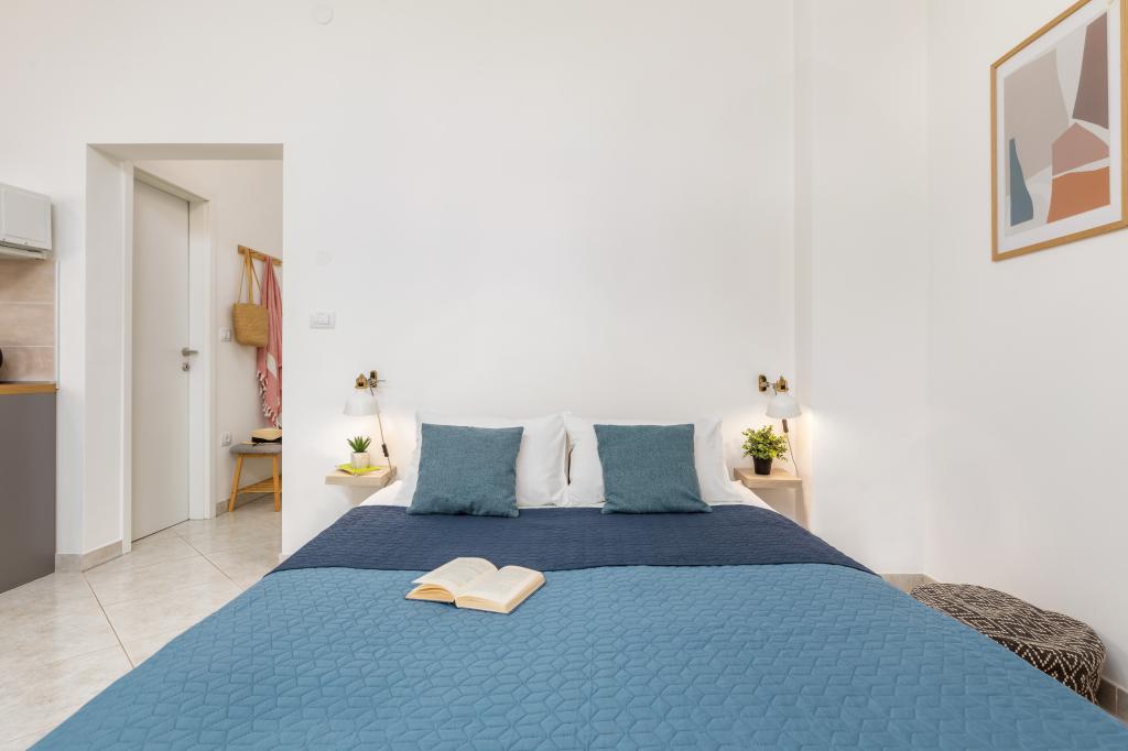 Garsonka se nachází v novostavbě rodinného domu v klidné části města, jsou plně vybavené a mají terasu. Vzdálenost od centra města je asi 15 minut pěšky a na pláž asi 10 minut autem. V bezprostřední blízkosti se nachází nákupní centrum, supermarket, nemocnice, restaurace, kavárny, čerpací stanice, posilovna a dětský park. V přízemí je možnost uložení kočárků a kol.
