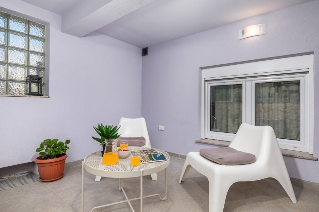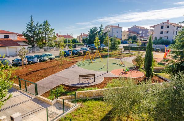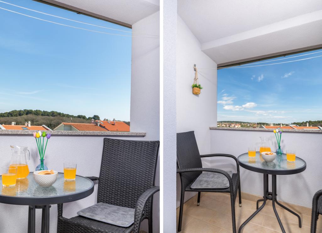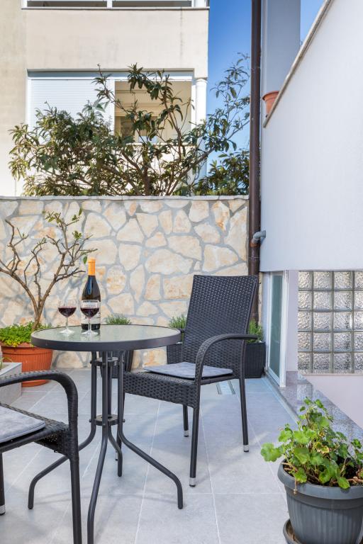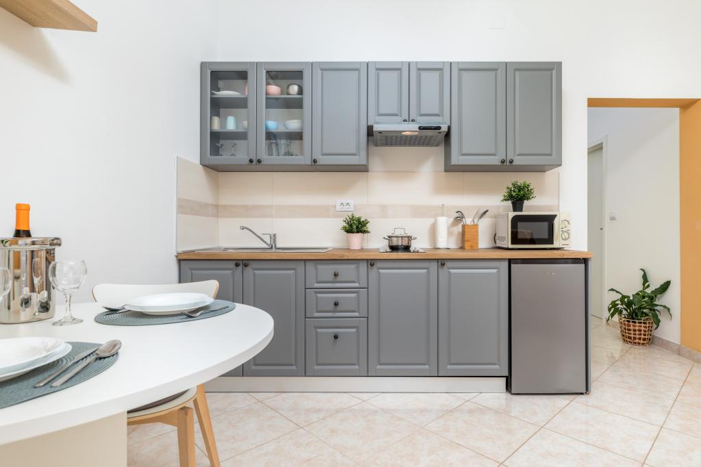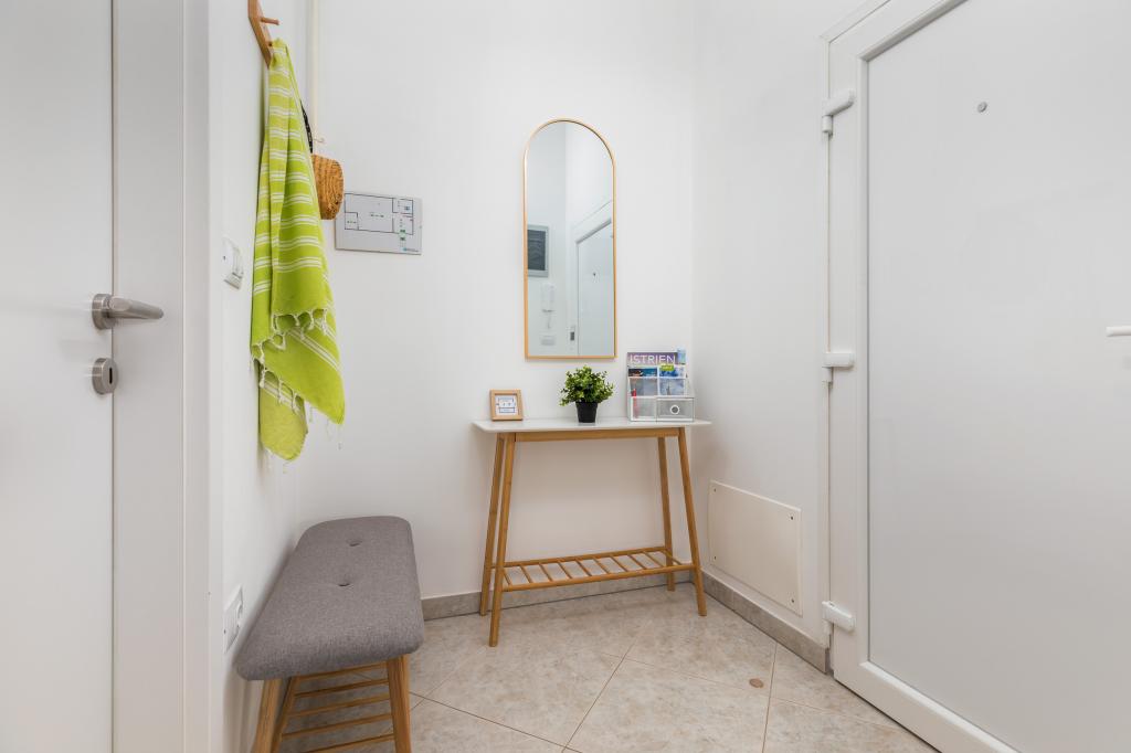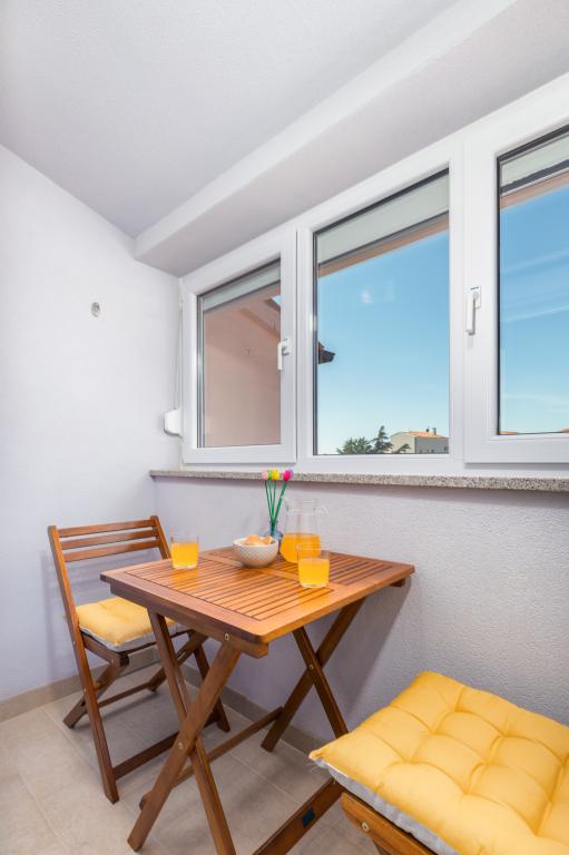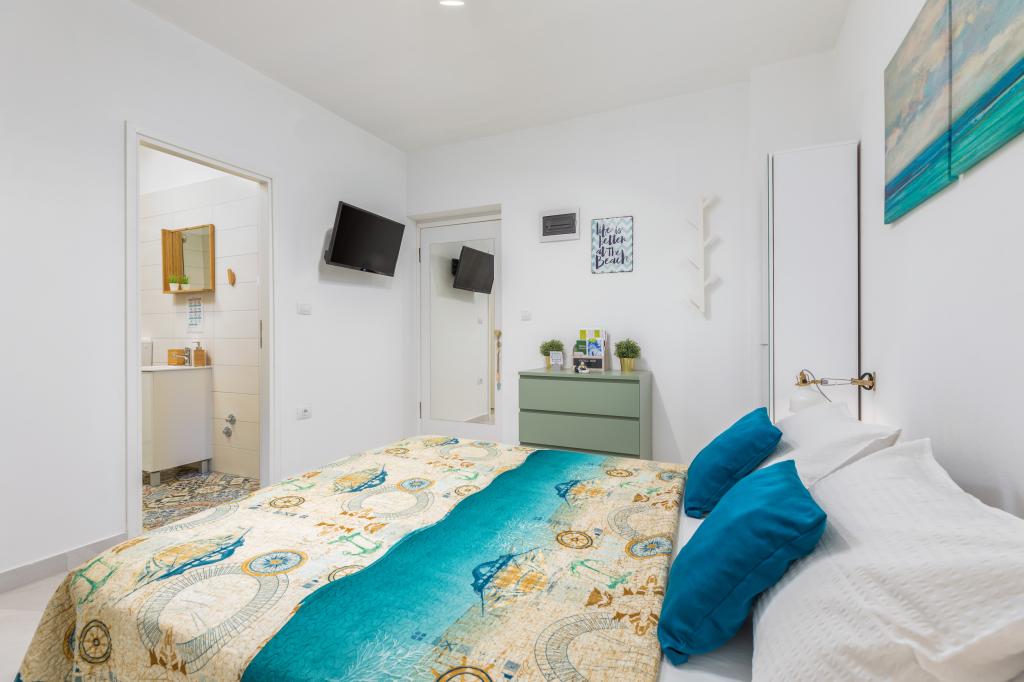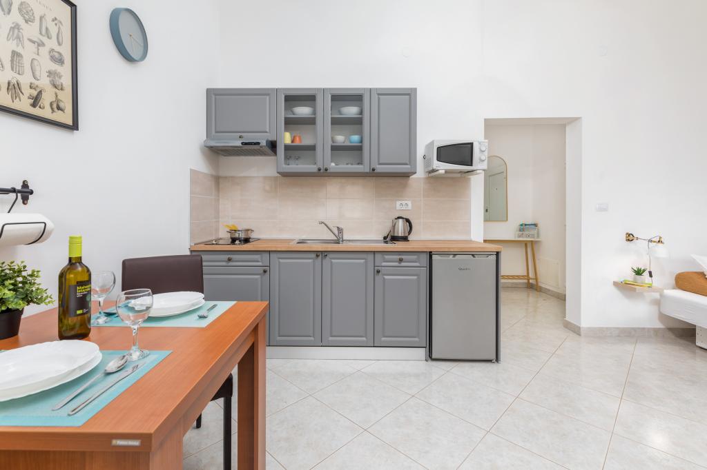 Garsonka se nachází v novostavbě rodinného domu v klidné části města, jsou plně vybavené a mají terasu. Vzdálenost od centra města je asi 15 minut pěšky a na pláž asi 10 minut autem. V bezprostřední blízkosti se nachází nákupní centrum, supermarket, nemocnice, restaurace, kavárny, čerpací stanice, posilovna a dětský park. V přízemí je možnost uložení kočárků a kol.
