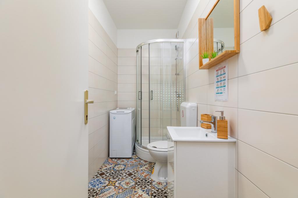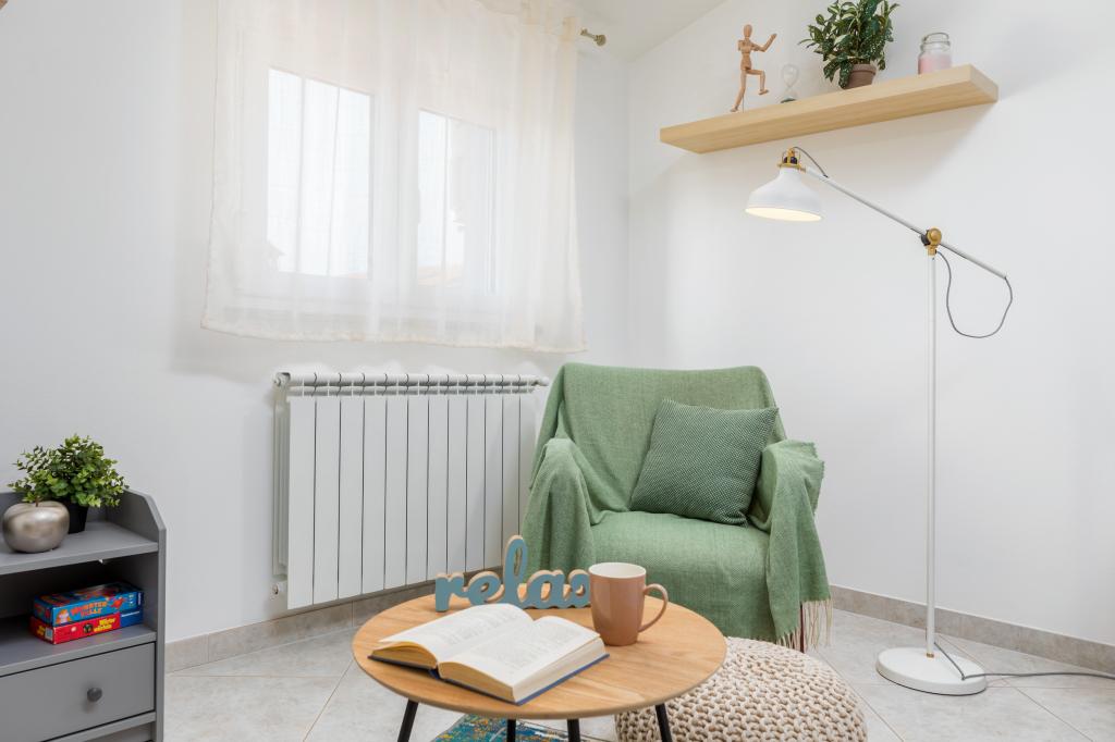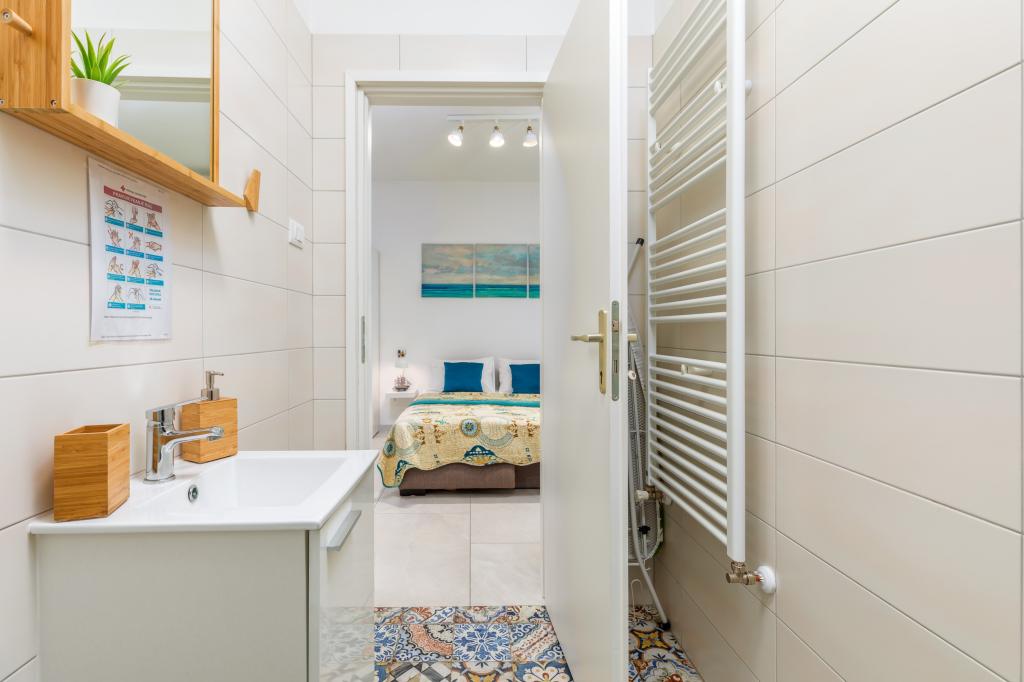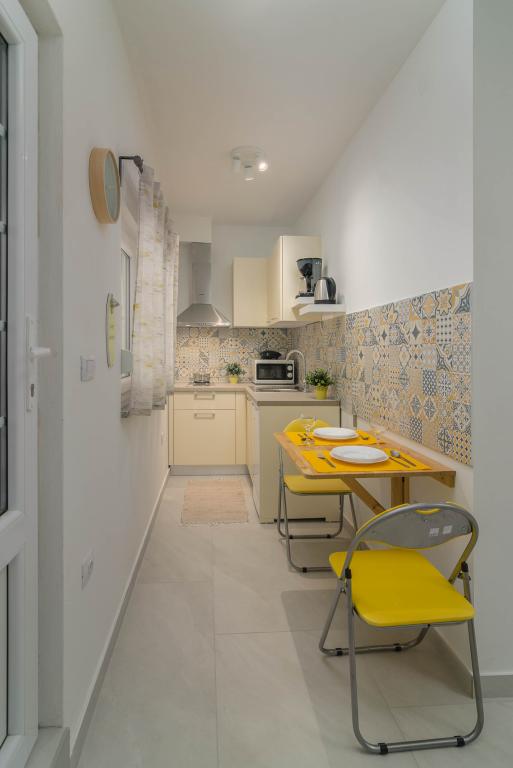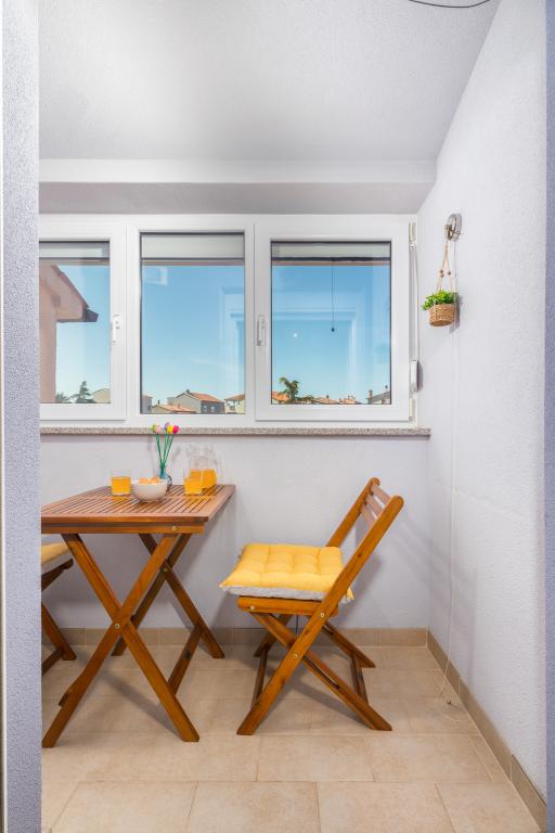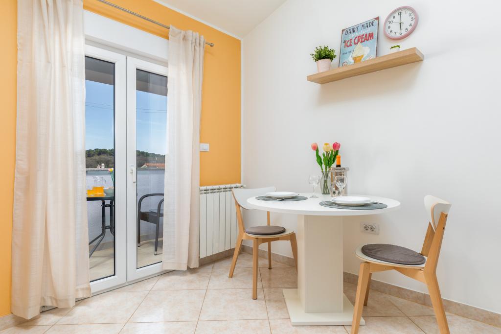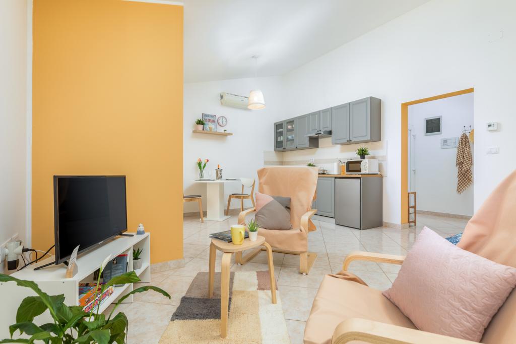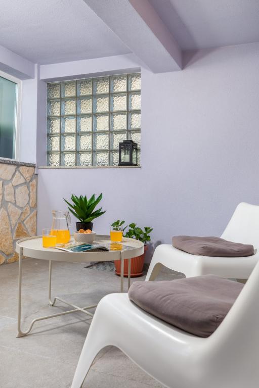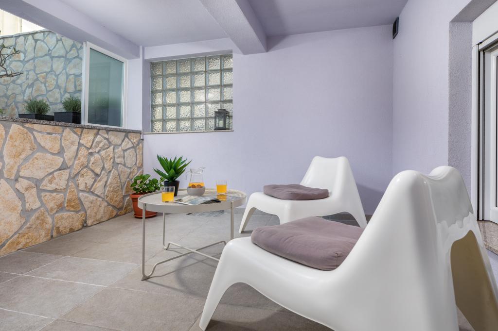Garsonka se nachází v novostavbě rodinného domu v klidné části města, jsou plně vybavené a mají terasu. Vzdálenost od centra města je asi 15 minut pěšky a na pláž asi 10 minut autem. V bezprostřední blízkosti se nachází nákupní centrum, supermarket, nemocnice, restaurace, kavárny, čerpací stanice, posilovna a dětský park. V přízemí je možnost uložení kočárků a kol.