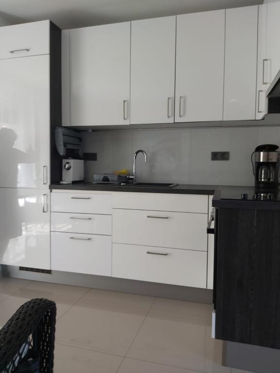 Nové a moderně vybavené apartmány v klidné oblasti, ve třetí řadě od moře; Nemovitost se nachází 2 minuty chůze od centra a 5 minut chůze od pláže. Vím, že podél pláže jsou restaurace a další služby pro hosty. Sportovní aktivity lze provozovat s doprovodným vybavením umístěným přímo u pláže. A také dětské vychytávky pro zábavu a hraní. Poznámka. Pláže jsou v noci osvětlené barem, kde si hosté mohou užívat a relaxovat u moře.