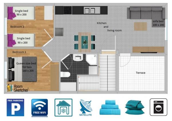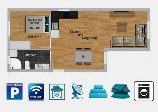 Apartmán pro dvě osoby se dvěma přistýlkami (45 m2)