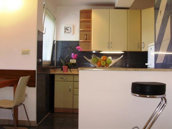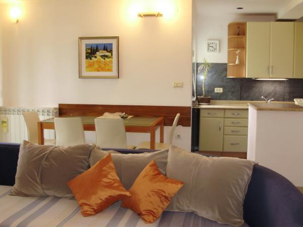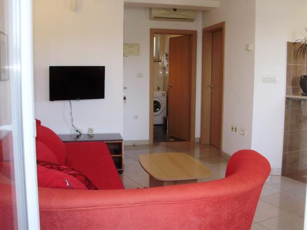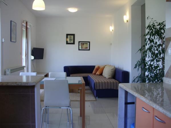 Interiér je přesně tak, jak je zobrazeno to. Byt je dokonale čisté. Veškeré vybavení a zásoby jsou ve velmi dobrém stavu. Pohled na nový port je velmi pěkné. Lokalita je dobře. Přes těsné blízkosti hlavní silnice je třeba počítat s žádným šumem. Majitelé jsou velmi milí a vždy dychtivý potěšit - nikdy ctižádostivý! Jsme byly poskytnuty s mapou s takovým zájmem a důkazy o pekařství, restaurace a nákupní zařízení a dobře informovaní. Majitelé se také zeptal se nás, kde restaurací můžeme dobře najíst, a proto se nedoporučuje. Máme mimo jiné výlety do Farzana, Meldulin a Premantura vyrobeny, z nichž všechny jsou velmi pěkné.