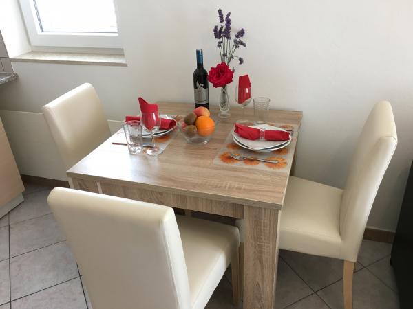 Ubytovací jednotkyBoravišnja taxa je zahrnuta v ceně. Klimatizace se platí 5 € za den Odjezd 10:00 Příjezd od 12:00 do 20:00. Rezervace jsou sjednány prostřednictvím e-mailový kontakt. Placená min. € 100 na předem za rezervaci a zbytek v hotovosti v den příjezdu.
