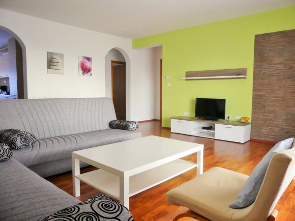 Zveme vás k strávit svoji dovolenou v našich apartmánech. Apartmány se nacházejí v klidném místě Stinjan v jihozápadní části Istrie, nedaleko Puly. To je obzvláště atraktivní pro rodiny s dětmi, protože jeho krásné pláže. Má krásný výhled na Národní park Brijuni. Ideální místo pro relaxaci. Jen asi 500 metrů od obce centrální pláže. V obci se nachází vše, co potřebujete pro vaši dovolenou. Jen pět kilometrů v Pule jsou nákupní centra, butiky, restaurace, bary, muzeí. Přibližně každou půlhodinu se nachází autobusová z Stinjan do Pula 6:00 do 22:00 hodin. Apartmány jsou velmi prostorné a plně vybavené. Všechny pokoje jsou prostorné, byt je plně vybaven.