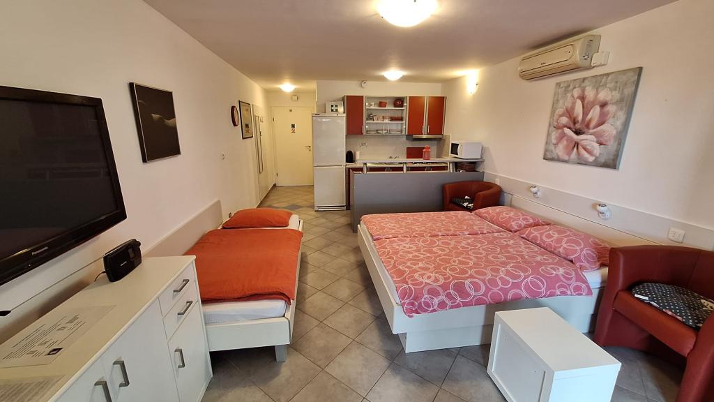 Pobytová taxa je v ceně.Skvělé ubytování. Byt je krásný a čistý. Terasa v nikým nerušeném soukromí. Vybavení apartmánu je lepší než ve čtyřhvězdičkových hotelech. Pláž 5 minut chůze, procházka s krásným výhledem na moře. Majitel nás mile přivítal, vše nám vysvětlil, provedl a také jsme od něj dostali dárky na uvítanou. Moc děkujeme Marko, měli jsme skvělou dovolenou