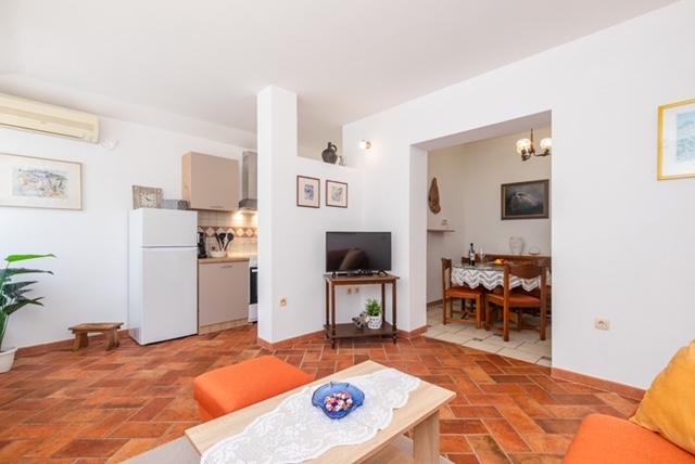 Apartmán NM se nachází v Punatu v přízemí rodinného domu s upravenou zahradou a parkovacím stáním. Dům je 15 minut chůze od centra vesnice a 5 minut od první pláže. Zrekonstruovaný apartmán se skládá z ložnice s manželskou postelí (180*200), koupelny, kuchyně, jídelny, obývacího pokoje, čítárny a terasy. Prostorný a plně vybavený apartmán pro Váš příjemný pobyt a dovolenou. Vítejte!