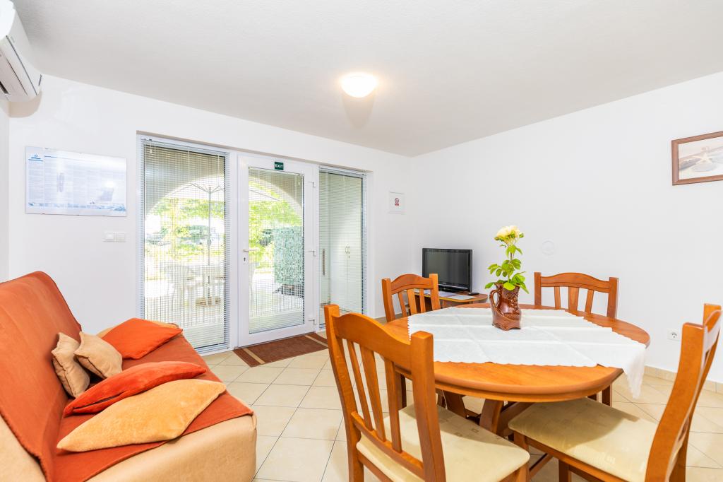 Ubytovací jednotkyPro rezervaci je nutné uhradit zálohu ve výši 100 € prostřednictvím banky (IBAN) a zbytek účtu se platí v hotovosti při příjezdu. Příjezd do apartmánu je možný po 14 hodině, odjezd do 10 hodin. Základní cena v apartmánu je za 2 osoby. Za každou další osobu na přistýlce se cena zvyšuje o 12 €/den (1. května-14. července, 21. srpna-30. září) nebo 15 €/den (15. července-20. srpna). Každý apartmán má přistýlku pro 2 osoby. Děti do 3 let mají pobyt zdarma, pokud nevyužijí přistýlku. Při pobytu do 3 nocí se cena služby zvyšuje o 30 %. Pobytová taxa je zahrnuta v ceně.